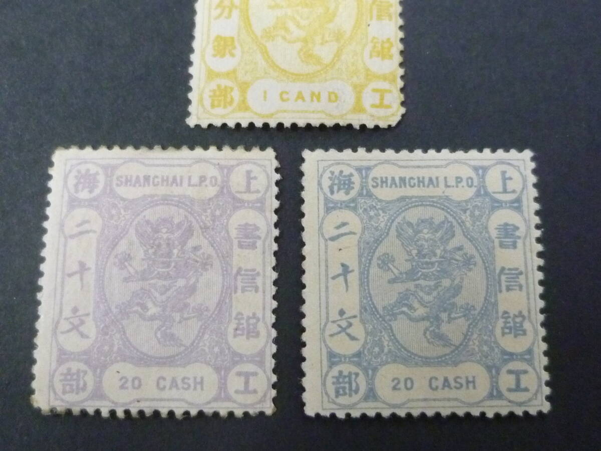 24L M №1 旧中国切手 上海書信館 1875-77年 JPS#53・65-66 工部小龍票 計3種 未使用OH