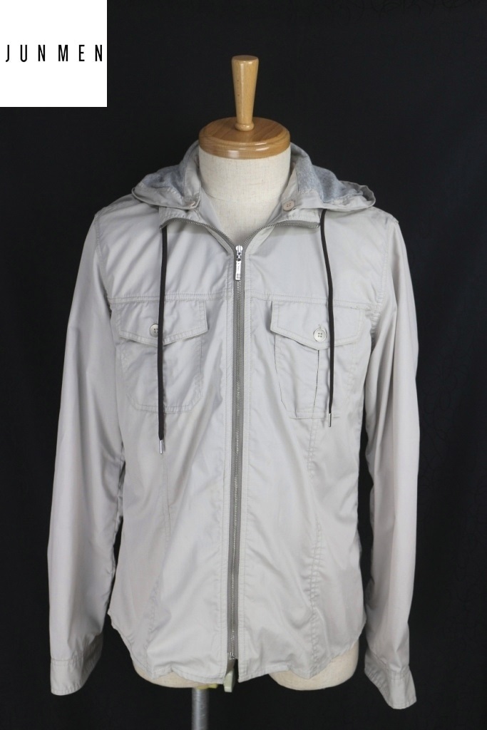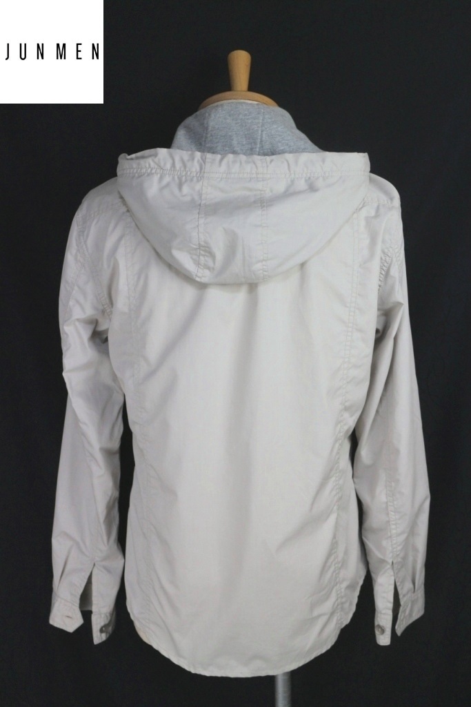 ■JLINE by JUNMEN■春夏 薄手 フード脱着 シャツブルゾン L ホワイトベージュ ジェイラインジュンメン パーカー
