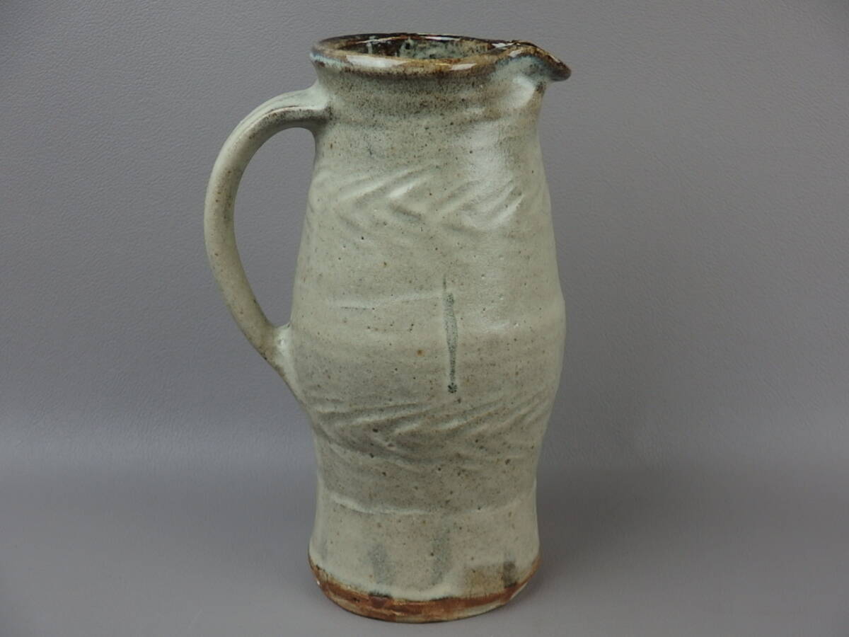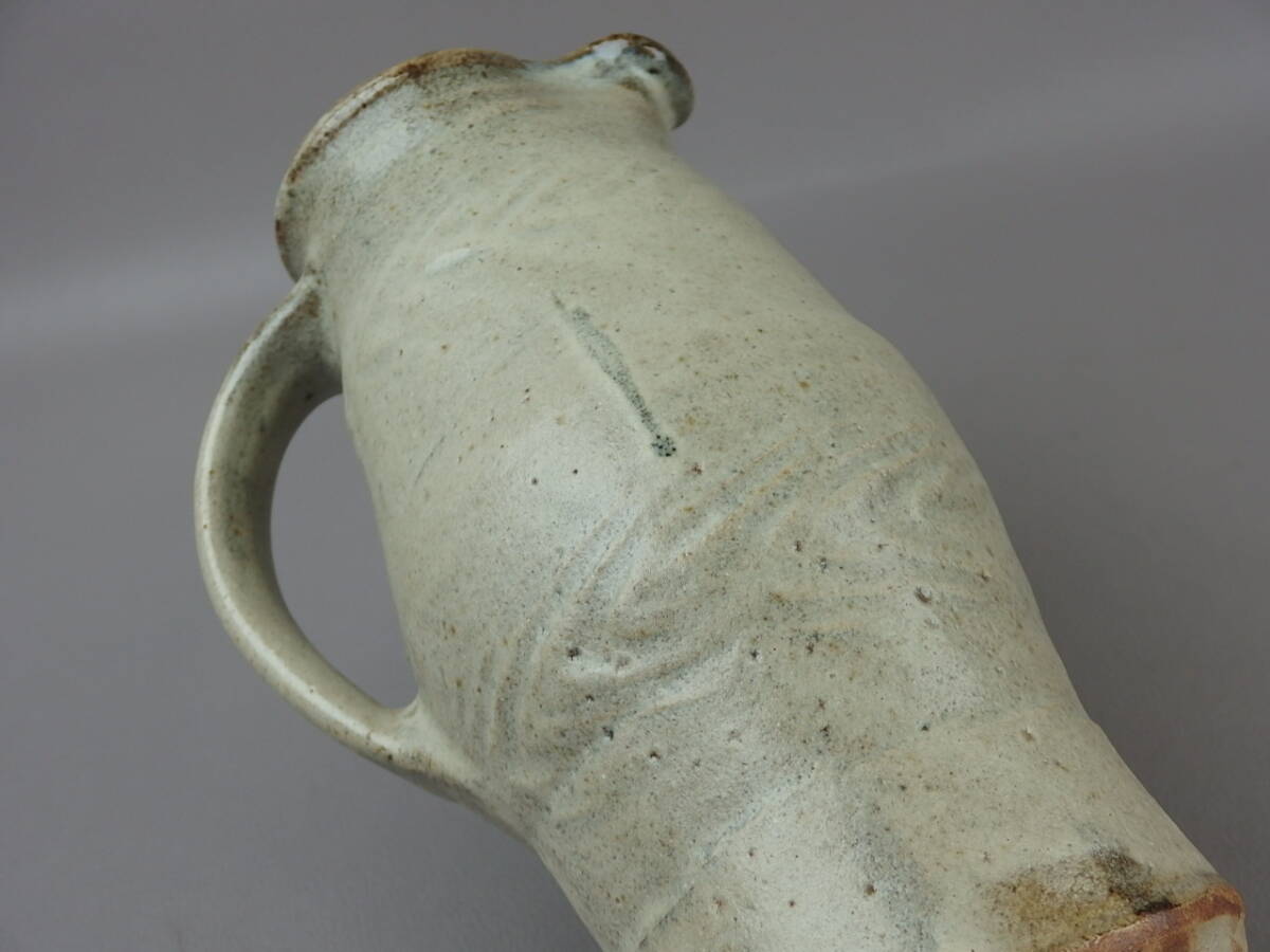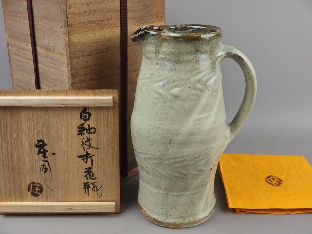 【骨董・茶道具】★人間国宝 浜田庄司(濱田庄司)★★白釉紋打花瓶 fk068vgl.8 ピッチャー 花道 華道