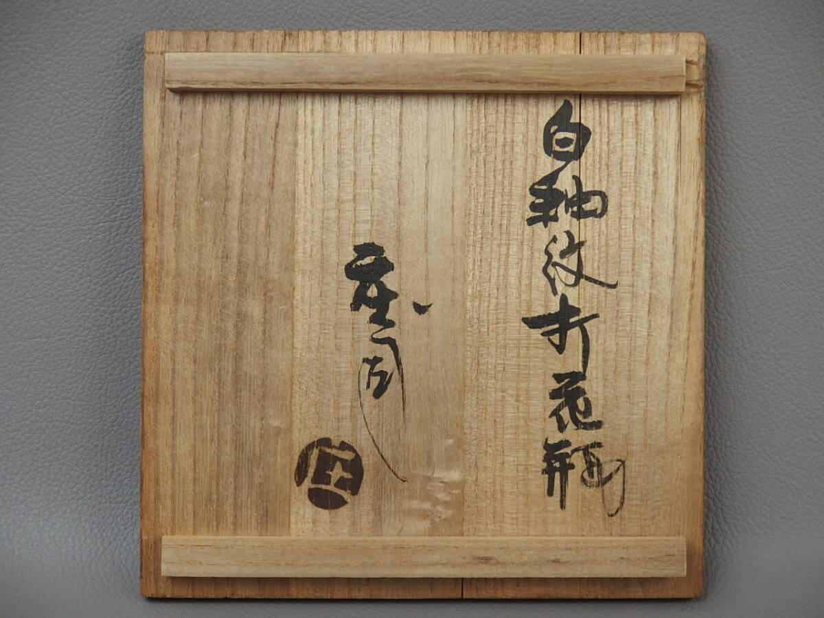 人間国宝、浜田庄司(濱田庄司)、白釉紋打花瓶、共箱です。