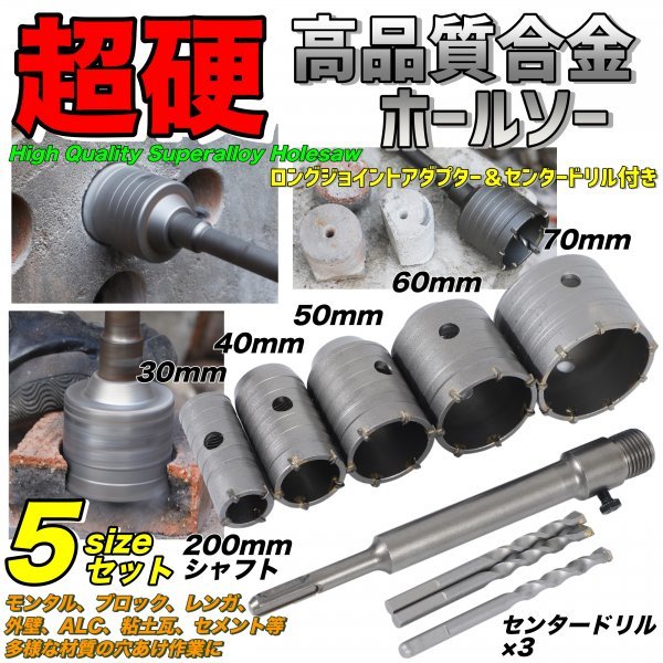 ホルソー セット ホールソー コアドリル コンクリート ドリルビット 穴幅 30 40 50 60 70mm セット 頑丈 工具 モンタル レンガ 外壁 ALC | |||