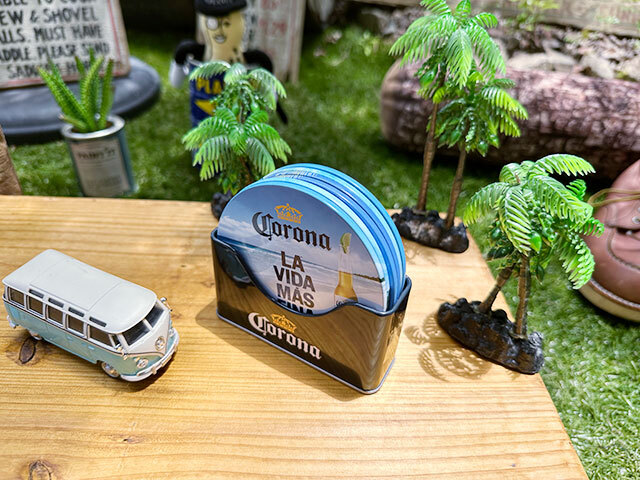 コースターを収納しておくお揃いのトレイもセットになってるので、使ってない時でもコロナロゴがテーブルを演出してくれて、パブシーンの雰囲気バツグンです!