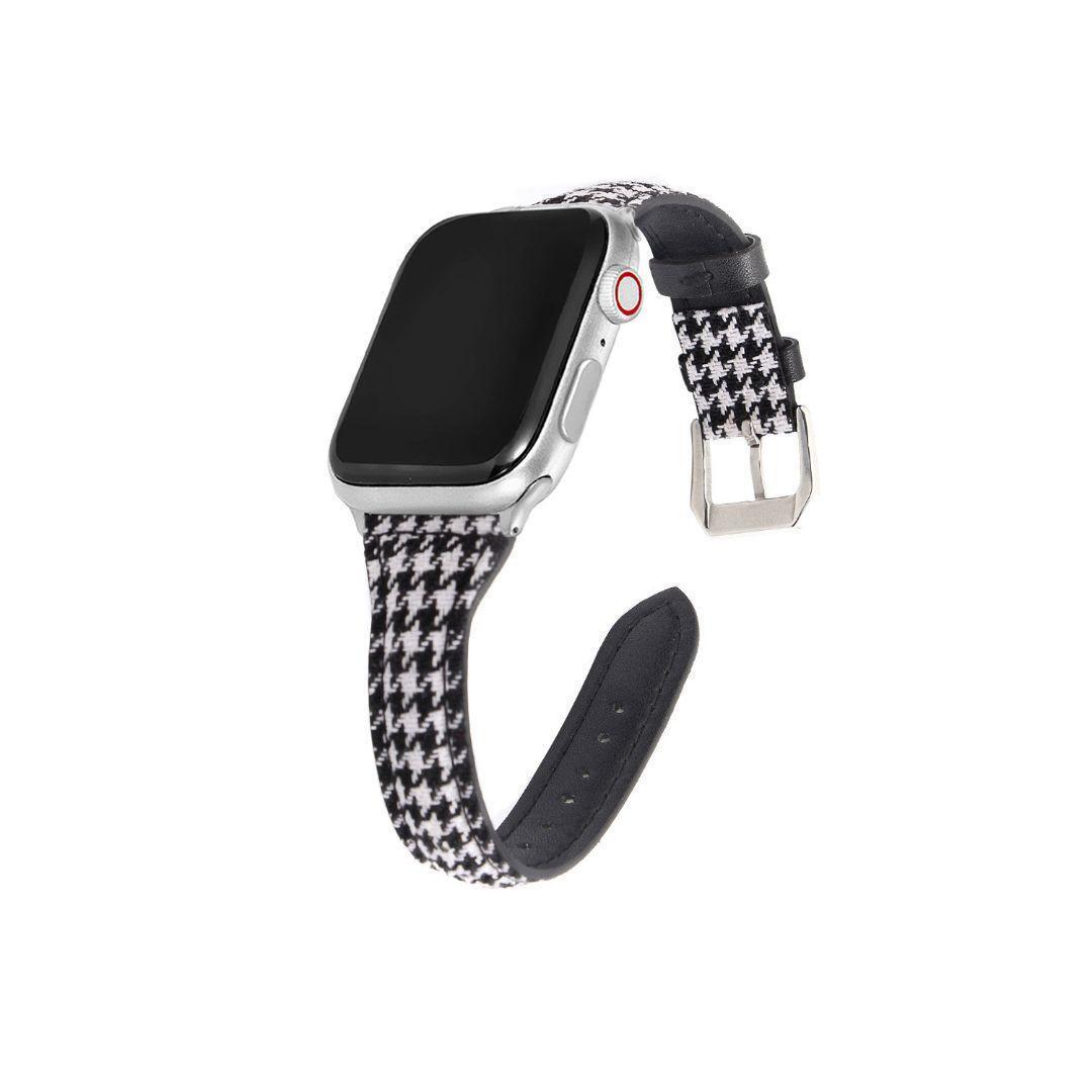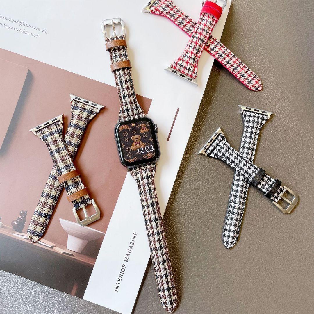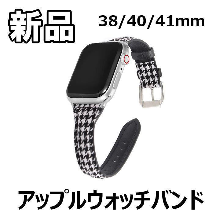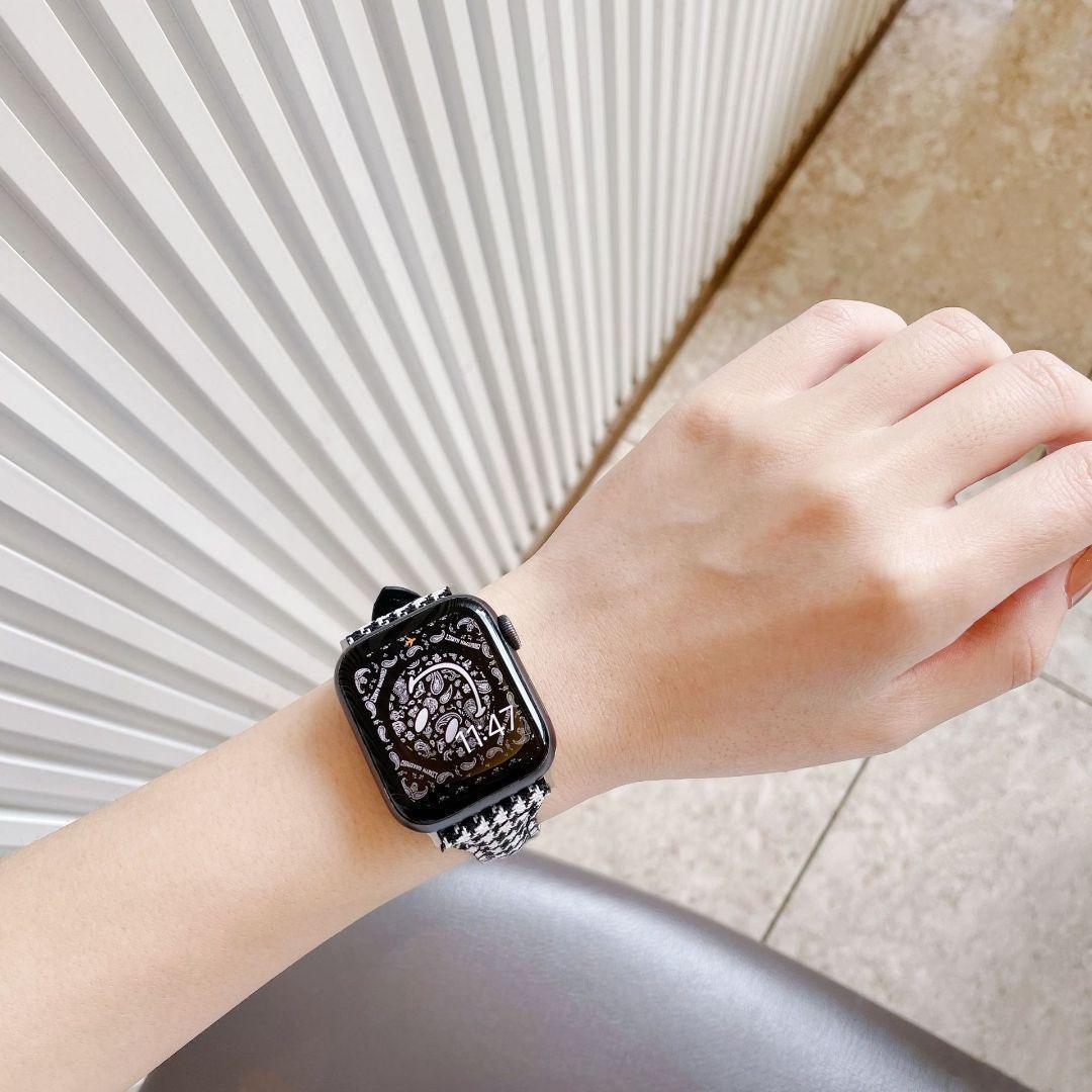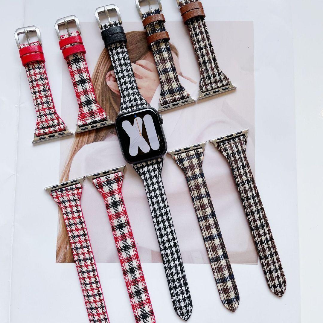 Apple Watch アップル ウォッチ 千鳥格子柄 ブロックチェック柄 キャンバス生地 フェイクレザー ブレスレット バンド