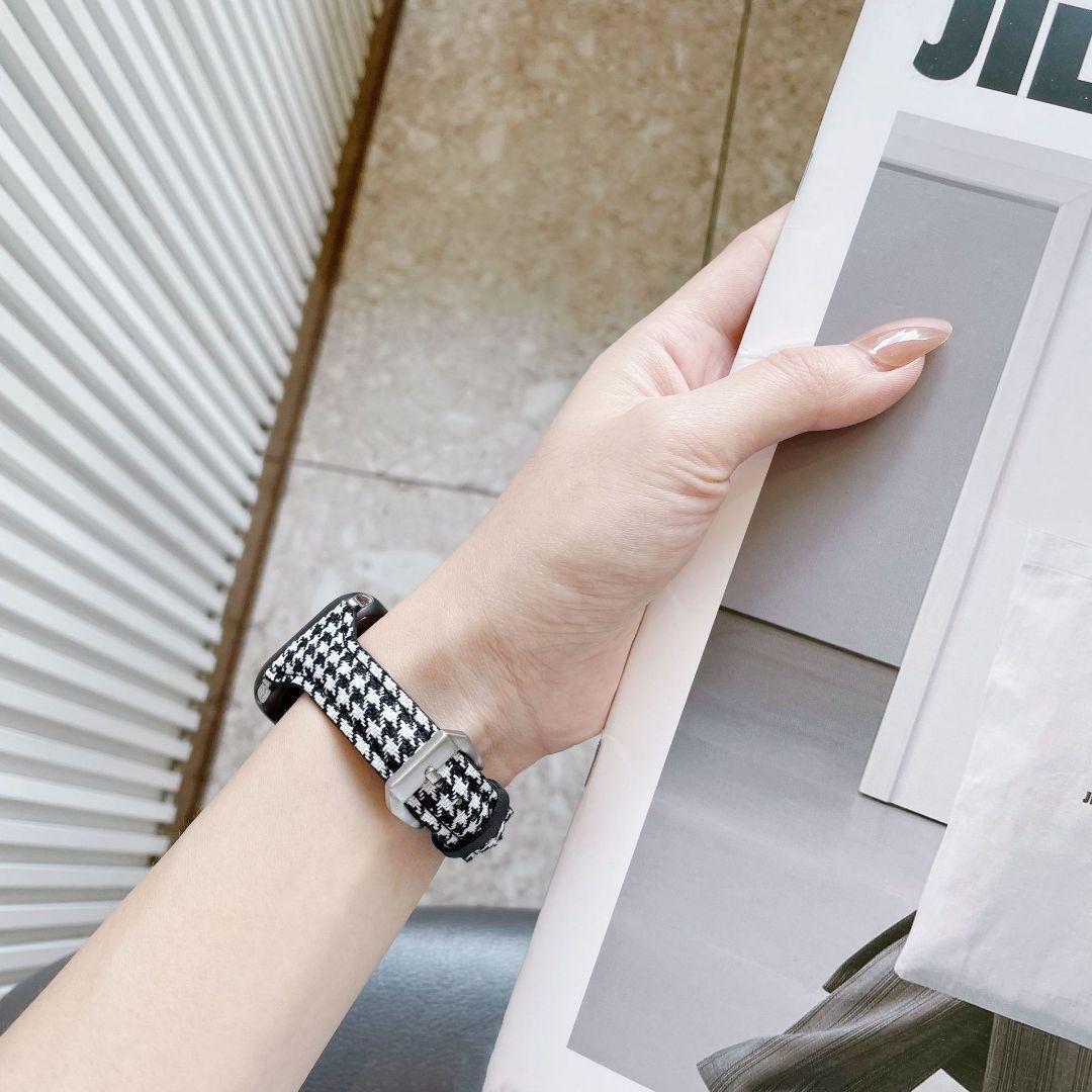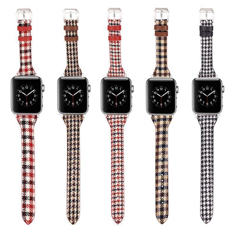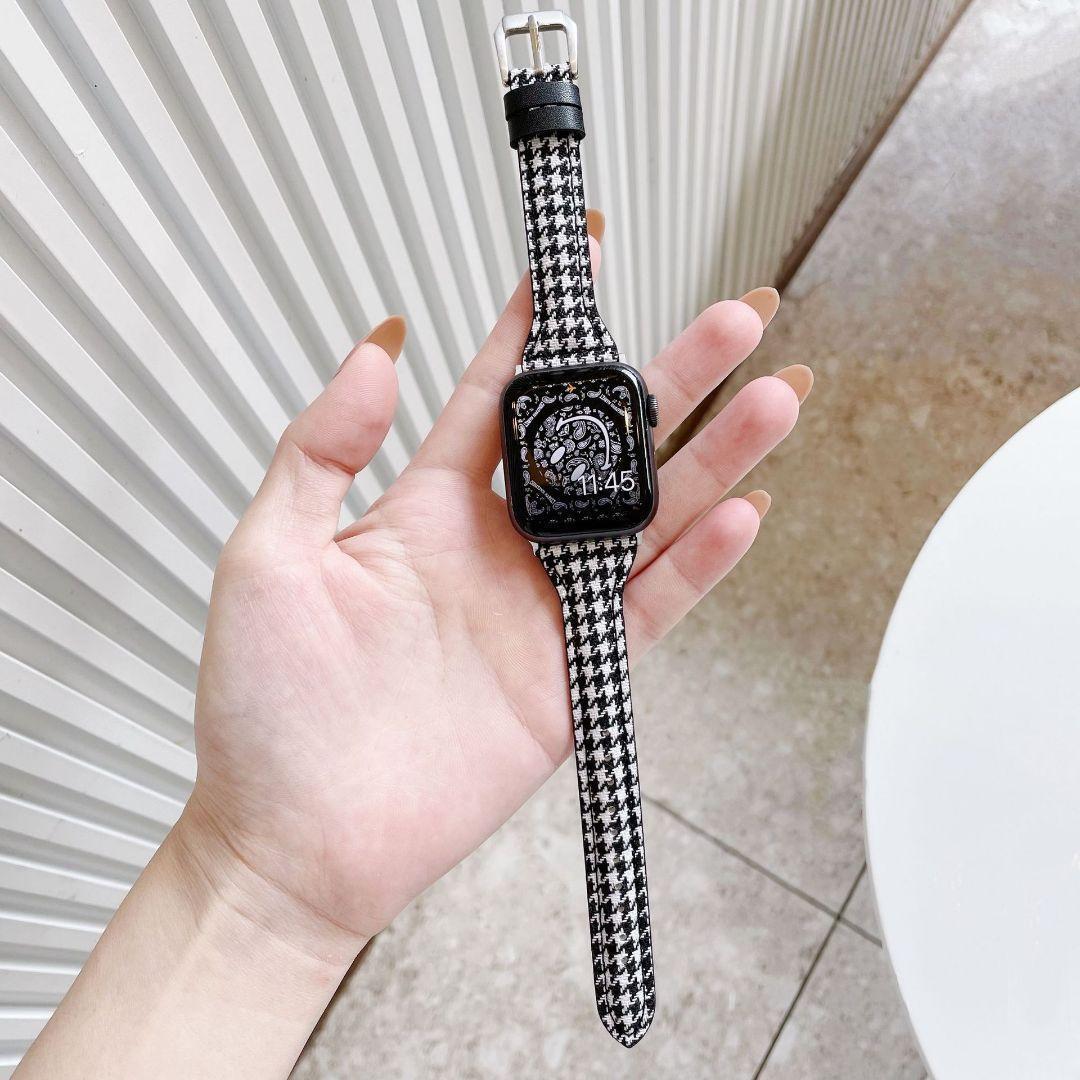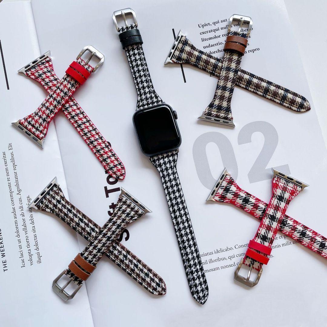 Apple Watch アップル ウォッチ 千鳥格子柄 ブロックチェック柄 キャンバス生地 フェイクレザー ブレスレット バンド
