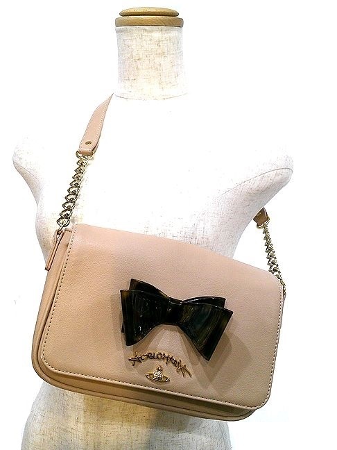Vivienne Westwood (ANGLOMANIA) べっ甲リボン付きロゴ チェーン バッグ ヴィヴィアンウエストウッド アングロマニア