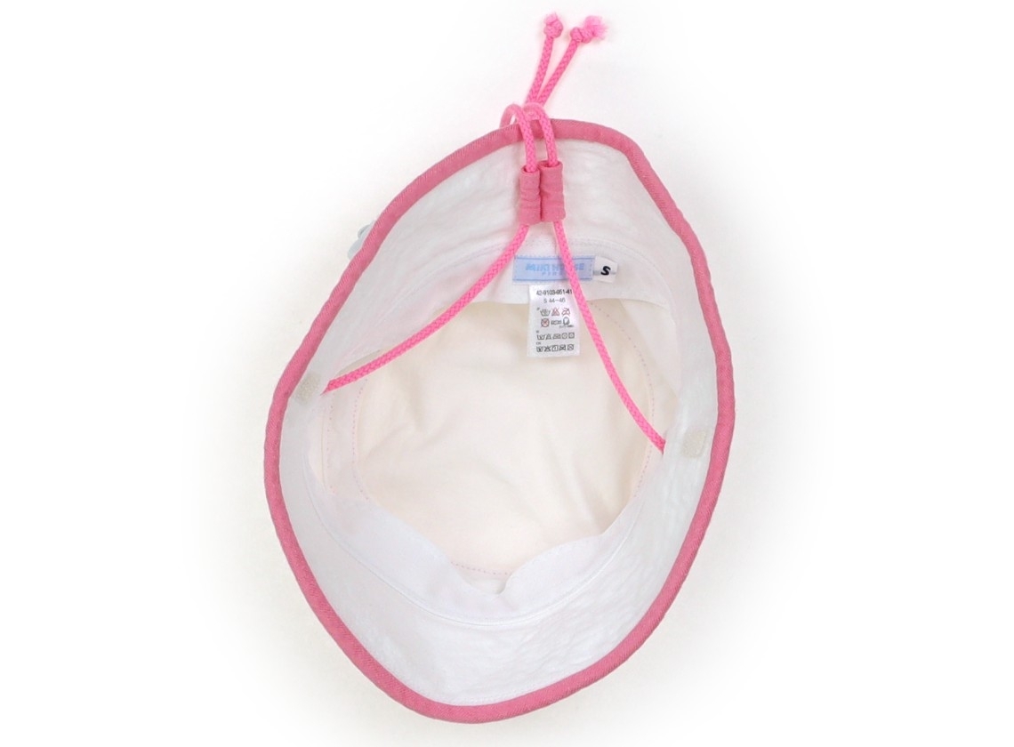 実際のサイズ表記はS44-46。本体はカットソー素材。若干毛羽立ちがあり、あご紐に少し毛玉がありますが、目立つ汚れはなくまだまだお使いいただけそうです。
