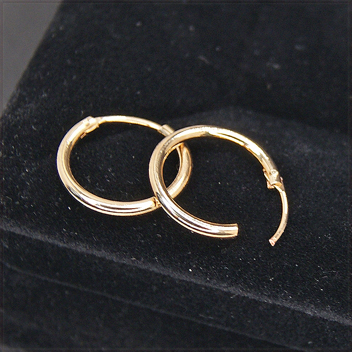 14K 585 Rose Gold Plated シンプル スリム ラウンド サークル ローズ ゴールド φ15mm リング ピアス です。