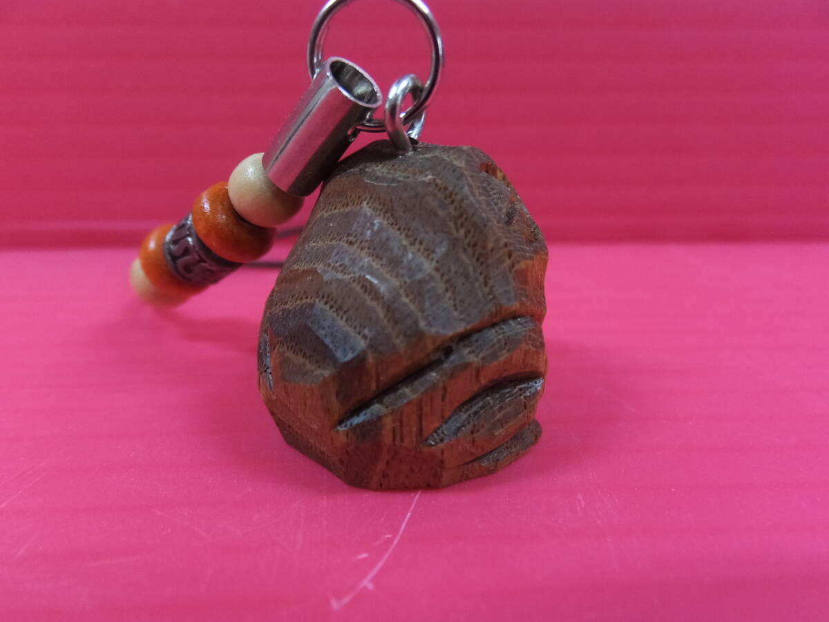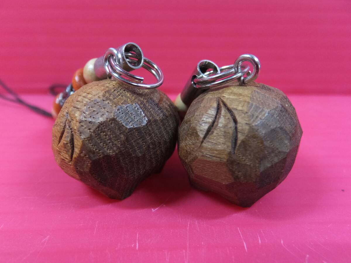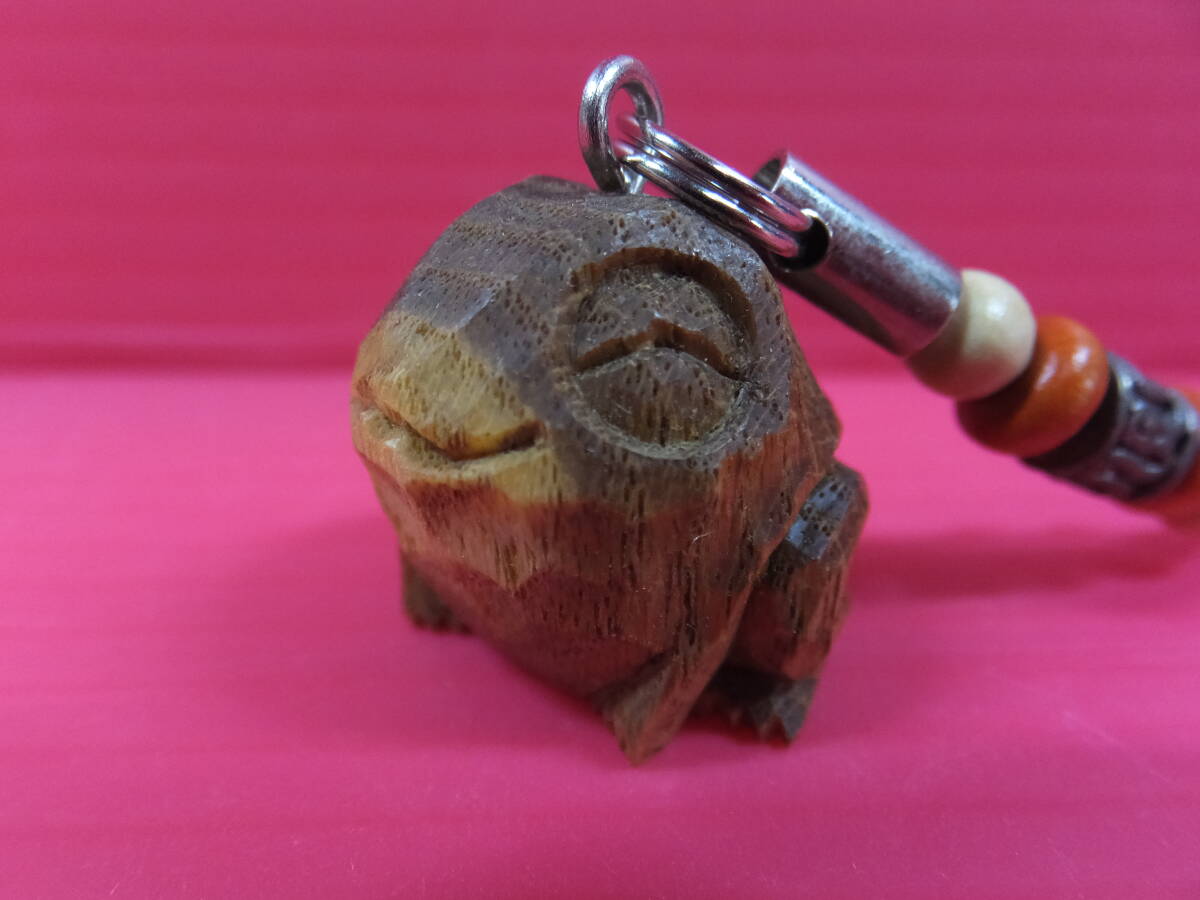 木製 木工芸品 木彫りのブタ 2匹 / 木彫りのカエル 1匹 / 木彫りのおちょこ? 1個 ストラップ 中古