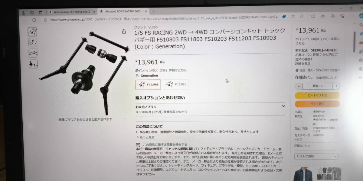 1/5FSracingモンスタートラック用のスペアとして購入しましたが、不要となりましたので出品します。