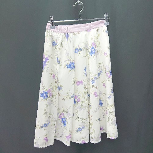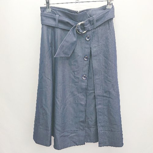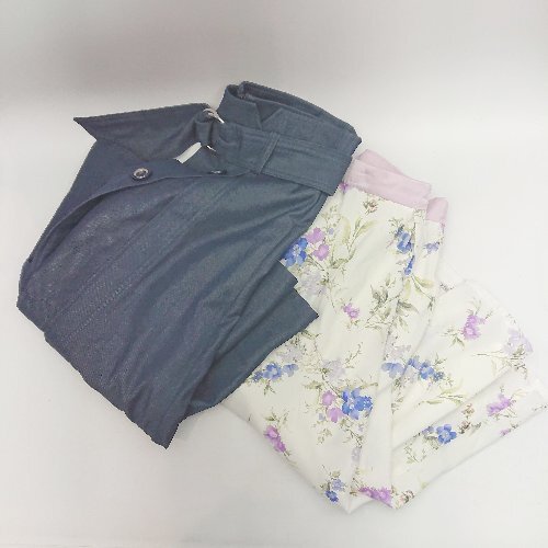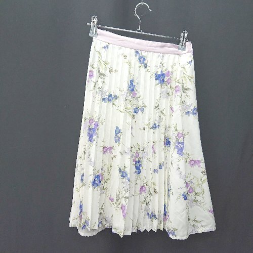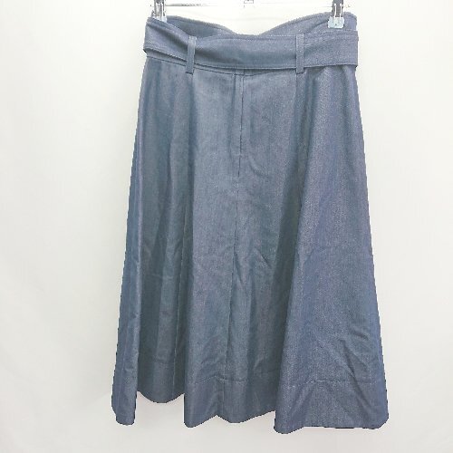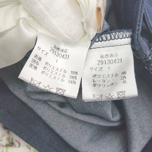 ◇ ◎ Apuweiser riche デニム風 花柄プリーツ レイヤード 膝丈 フレア スカート サイズ1 インディゴ レディース E