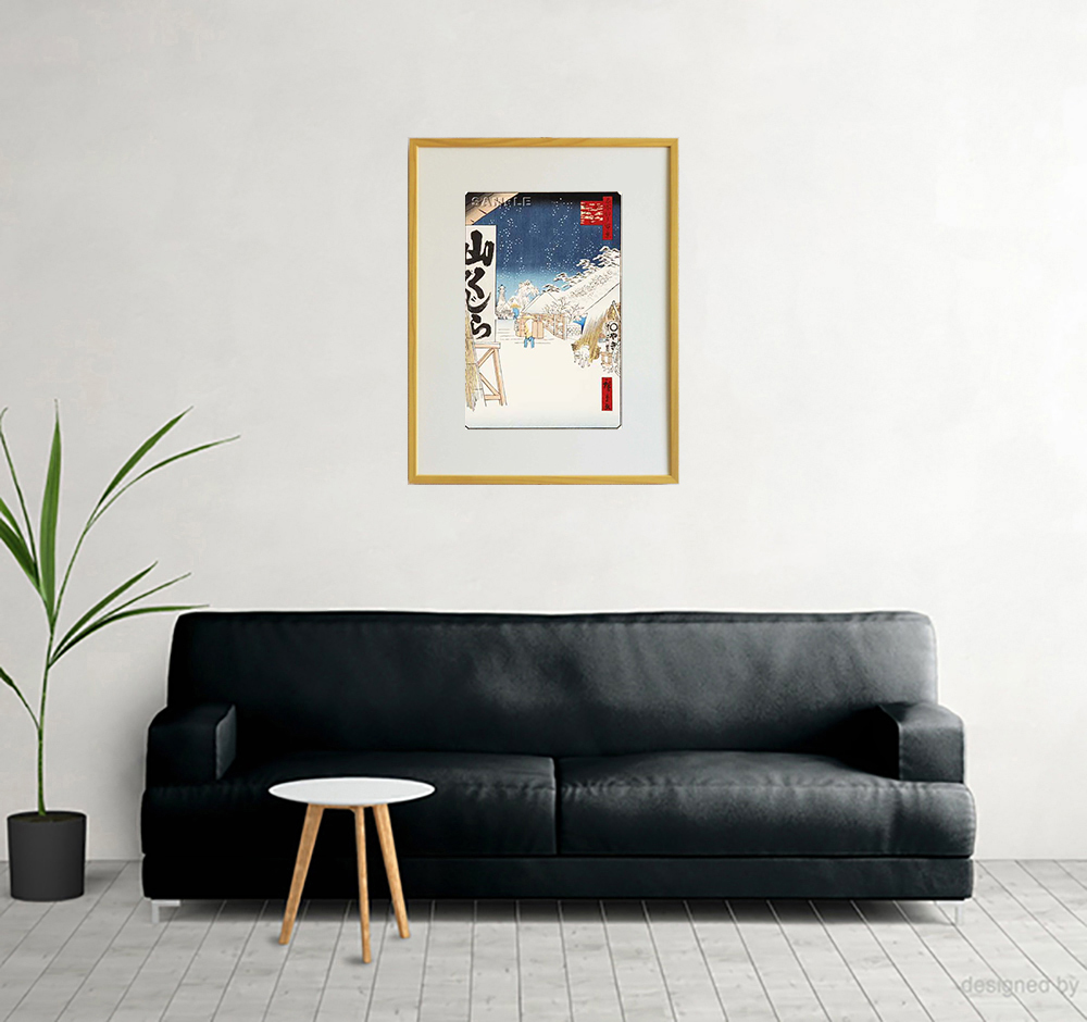 真作保証 東京都伝統工芸品 額装  歌川広重  木版画  #114 びくにはし雪中 初版1856-58年頃    広重の世界を唸らせた名構図!