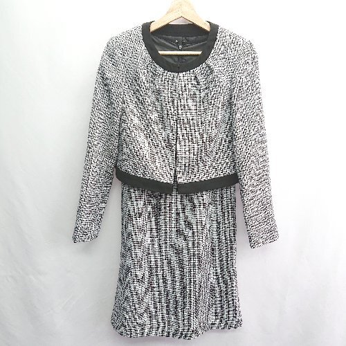 ◇ CINQ SEPT UN ツイード素材 上品 フォーマル ワンピース ジャケット サイズ9 ブラック ホワイト レディース E