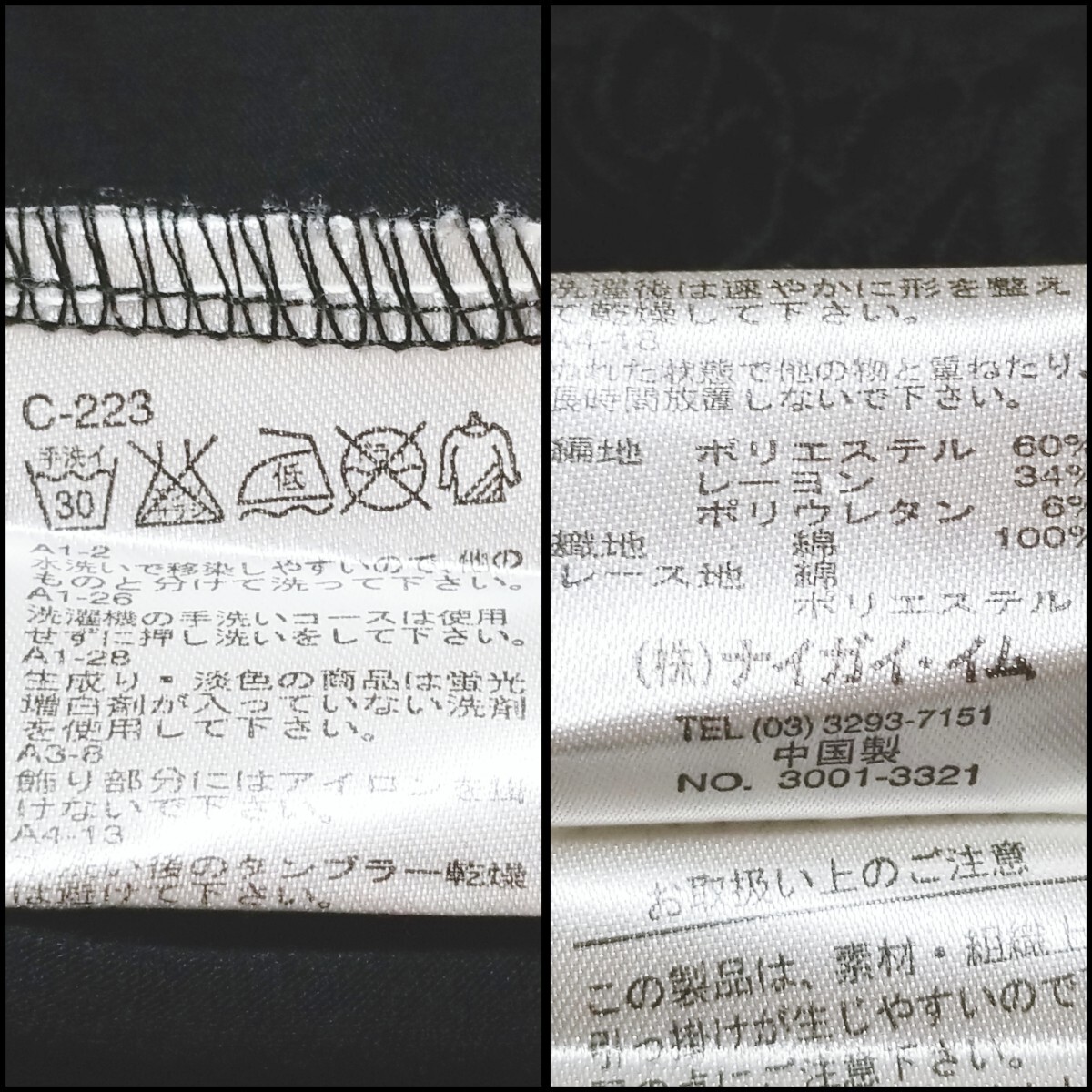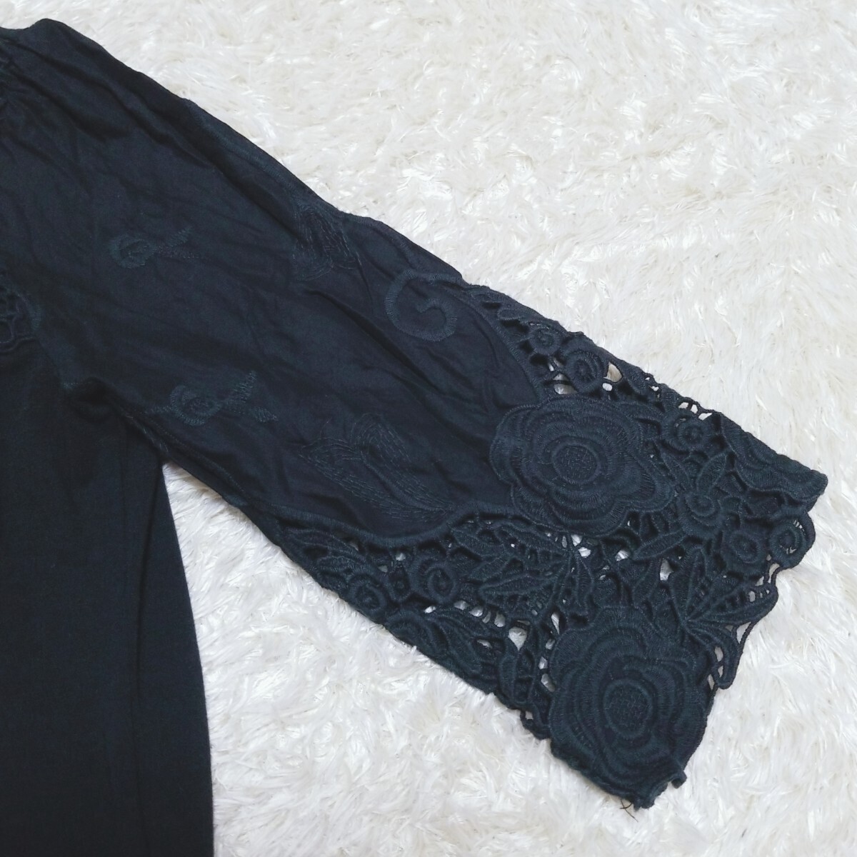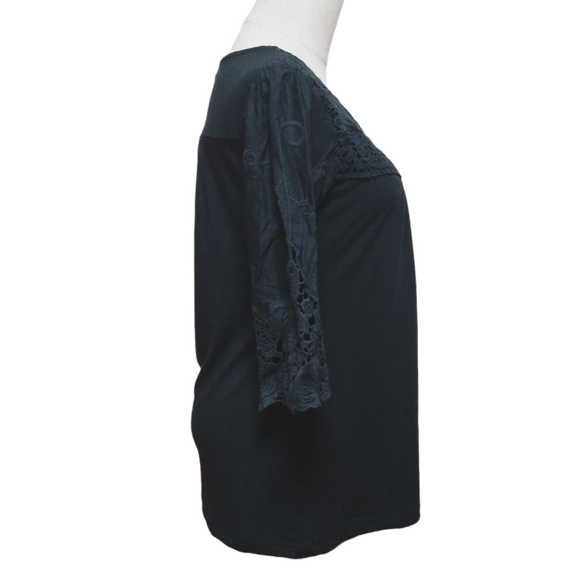 送料無料★Y1523 MALIANI マリアーニ レース 刺繍 カットソー トップス 七分袖 ストレッチ レディース 9 M ブラック 黒 エレガント 華やか