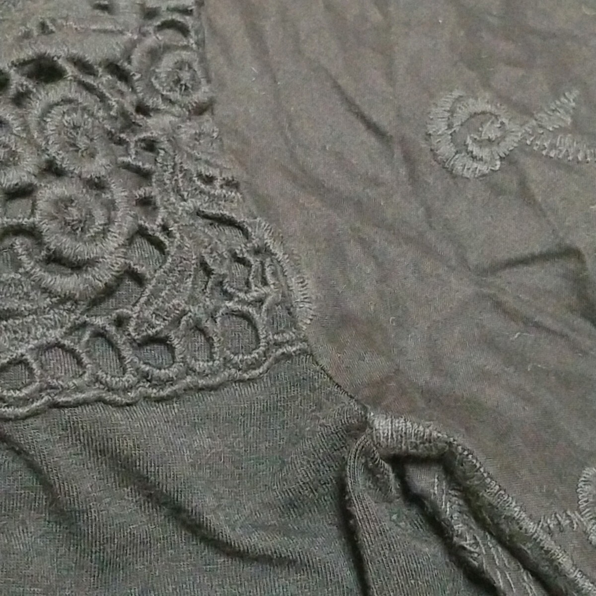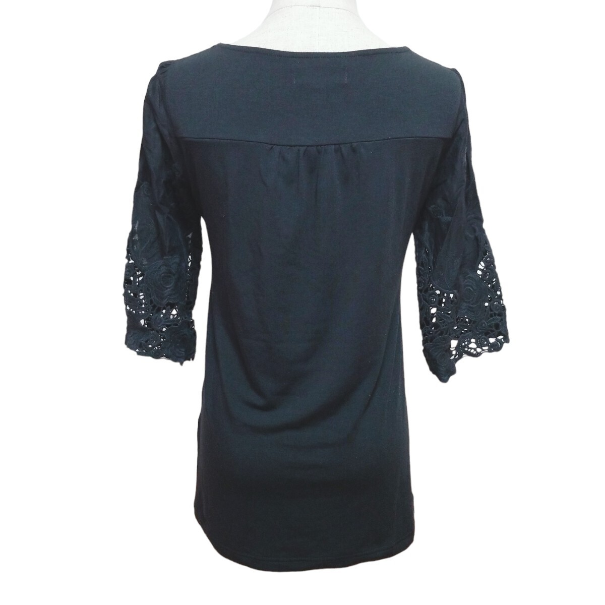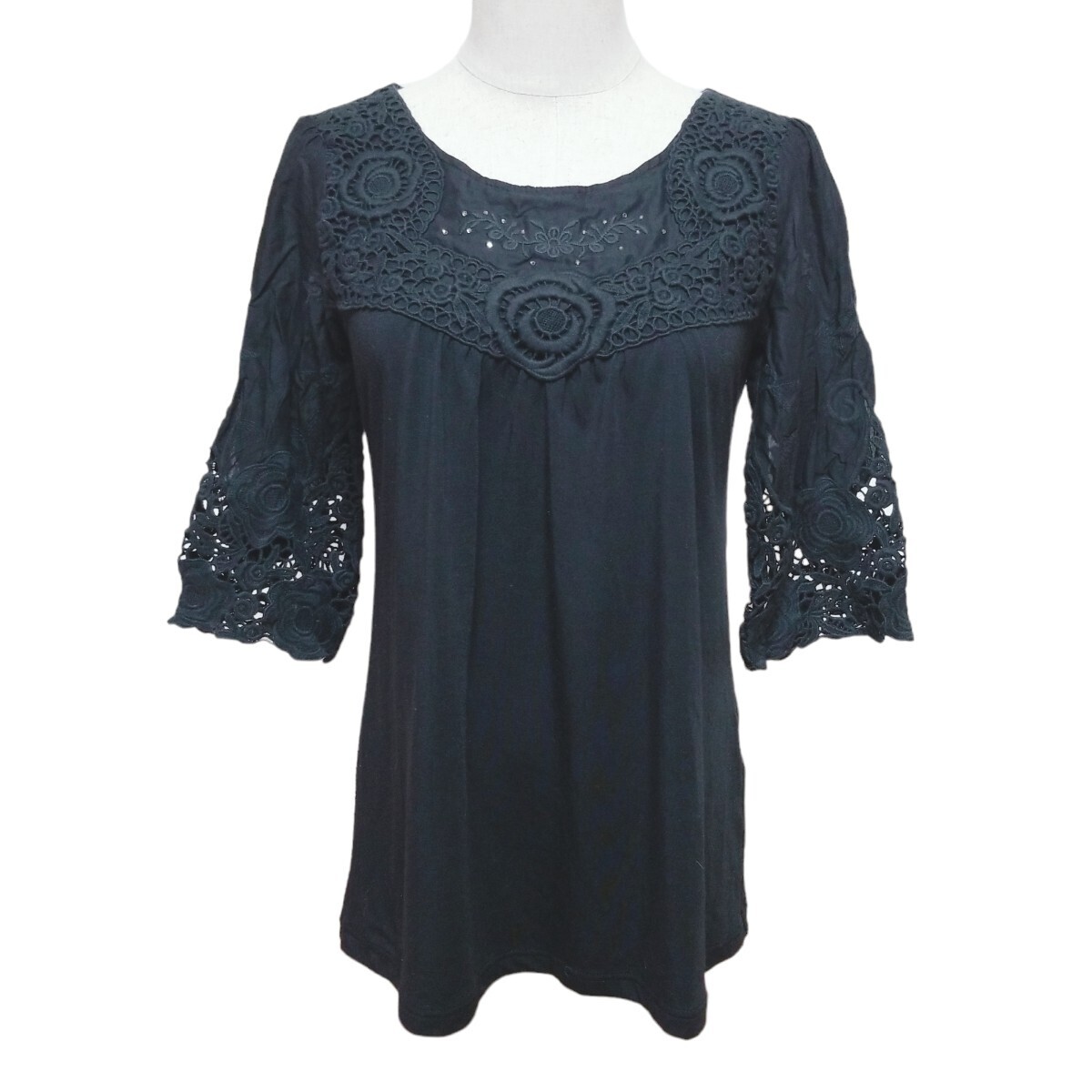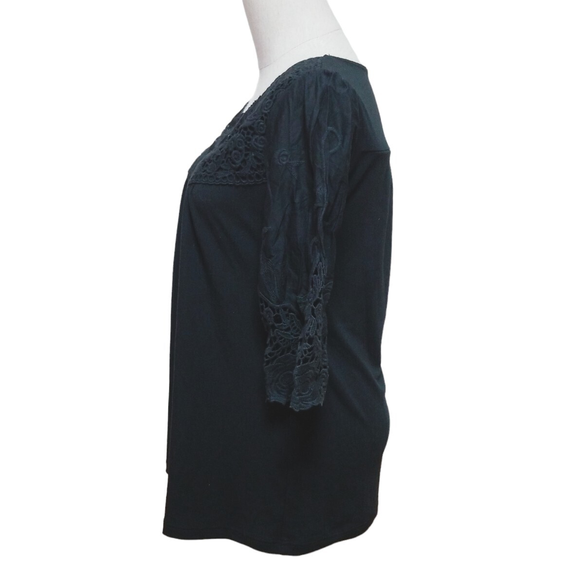 送料無料★Y1523 MALIANI マリアーニ レース 刺繍 カットソー トップス 七分袖 ストレッチ レディース 9 M ブラック 黒 エレガント 華やか