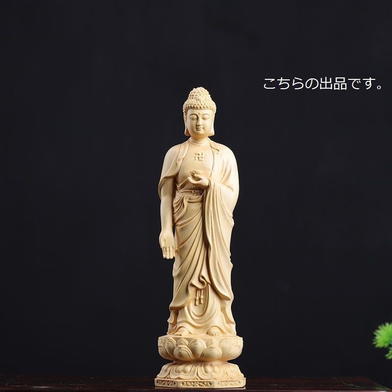 美品☆仏教美術高さ約13cm 阿弥陀如来三尊立像 ツゲ 観音菩薩 木彫仏像 精密細工