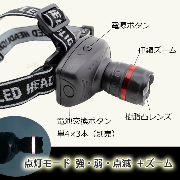 ヘッドライト 3Wスーパーパワー LEDライト伸縮ズーム