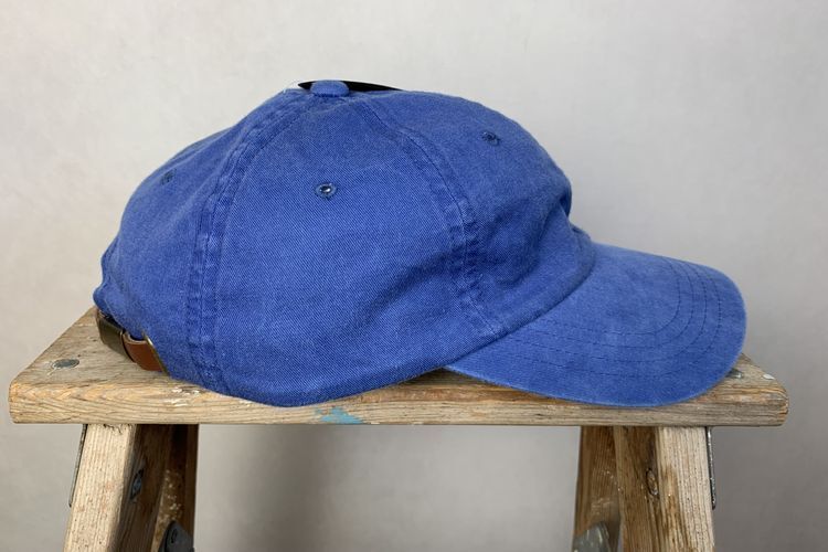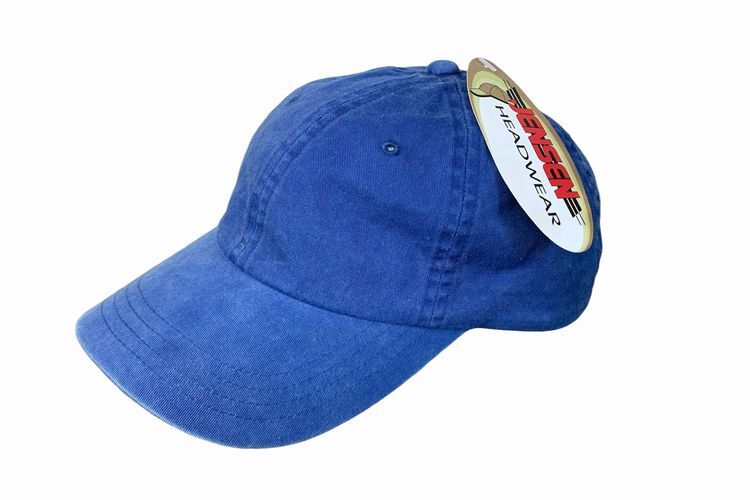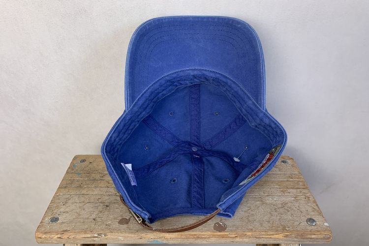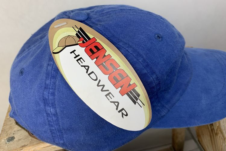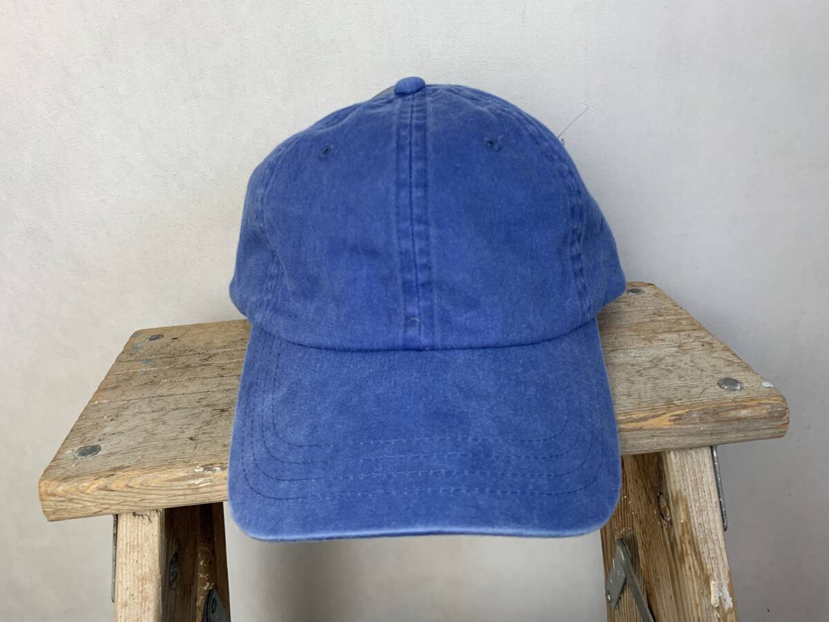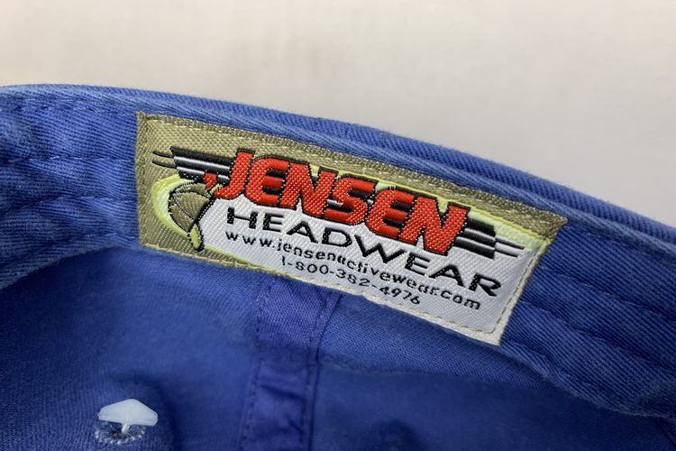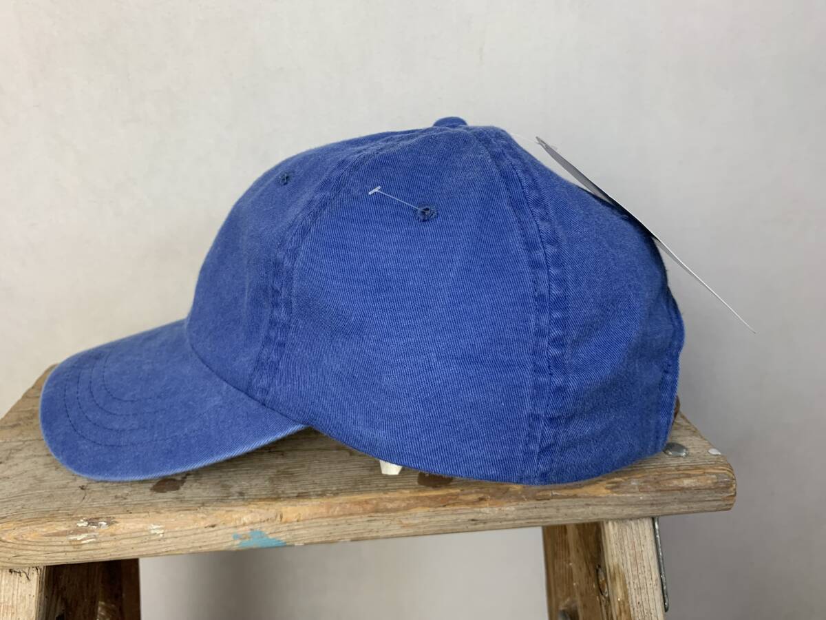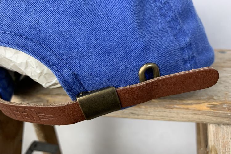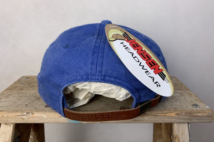 デッドストックJENSENジェンセンレザーバックルバック6パネルオールコットンキャップフラッシャー付きOneSizeブルーアメカジh24036