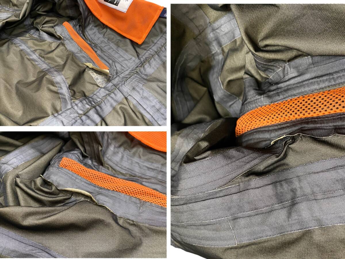 状態詳細 | 内側の張り合わせ部分に劣化による剥がれやべたつきがございます。(写真8、写真掲載個所以外にも複数かつ広範囲に剥がれやべたつきがございます)後ろ身頃に汚れが生じている個所がございます。(写真9)袖口にほつれが生じている個所がございます。(写真10) ・出来る限り状態の記載はいたしますが見落としにより完全に表記が出来ない場合がございます。 ・『新品』『デッドストック』『未使用品』表記の商品におきましても未使用品ですが、汚れ・伸びなどが若干生じる場合があります。 ・ご利用のパソコン環境や撮影時の光の加減で色や素材感などうまく表現できない場合があります。 ・気になる点は必ず落札前にご質問をお願いいたします。 |