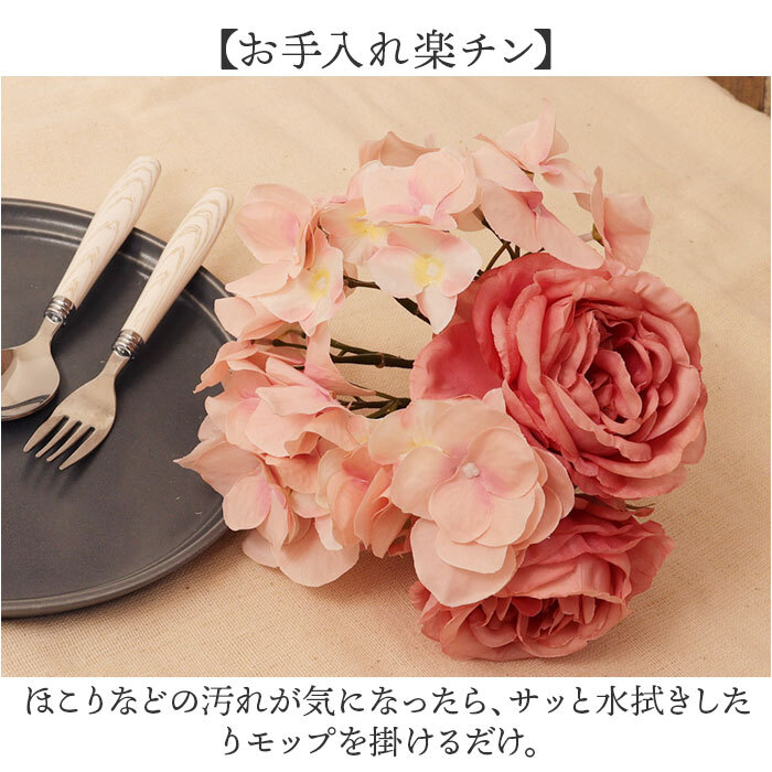 | 商品説明 | ・・【お部屋に植物の彩りを】 ・まるで本物のような見た目♪ローズハイドレンジアブーケが発売♪ ・【水やりなどお世話不要】 ・一番のポイントはお世話要らず◎フェイクグリーンなので水やりの必要もナシ! ・【鮮やかな姿を長く楽しめる】 ・枯れないので生花より、色鮮やかさを長く楽しめるのも嬉しいポイント。 ・【お手入れ楽チン】 ・ほこりなどの汚れが気になったら、サッと水拭きしたりモップを掛けるだけ。 ・【お店のインテリアにも】 ・ご自宅のインテリアにはもちろん、サロンやお店のディスプレイにも最適☆ |