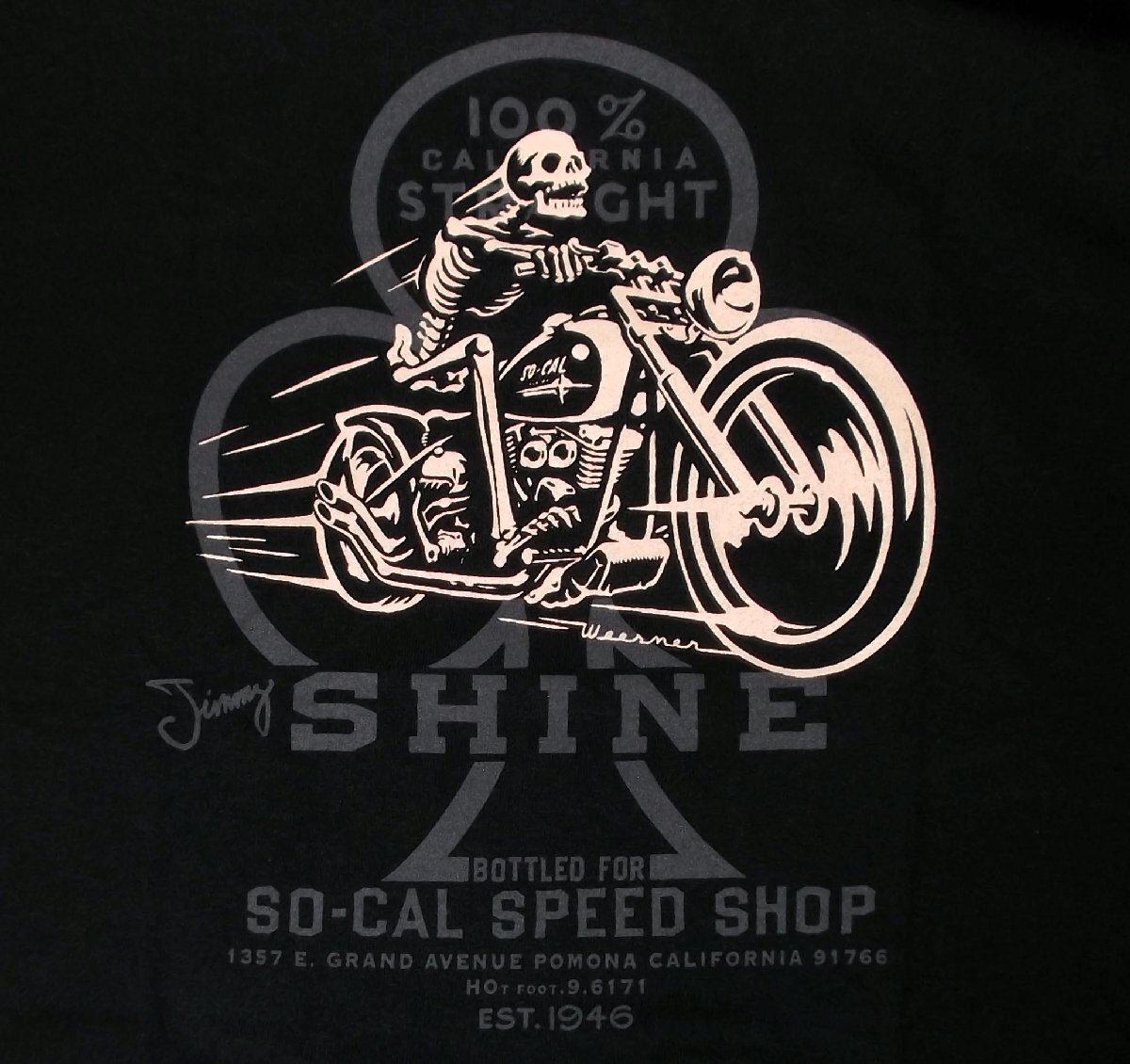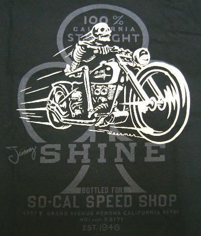 | So-Cal Speed Shop ソーキャル Tシャツ Shine bike 黒 The original and still our most popular. Black only—double-sided design. 1946年創業の伝統あるホットロッド・カスタムショップ「So-Cal Speed Shop」のTシャツです。 So Cal内においても、よりハードなホットロッドやチョッパー等のカスタムを手がけるカリスマビルダーJimmy Shineのアパレルラインからのリリース「Shine bike T-shirt」です。 黒ボディー前後の両面プリントで、スペードベースにBOBBERSスタイルのゴーストライダーとJimmy Shine, So-Cal ロゴ!! MOTOR & KUSTOM系ティストばっちりです。 新品・正規品 Lサイズ 180cm前後の方に良いかと思います。肩幅54cm、着丈78.5cm、身幅55cmです。 郵メール便送料¥250(代引き不可・紛失補償なし) ACE CAFE LONDON、LUCKY13、THRASHER、Sailor Jerry等~アメキャラ・企業ロゴ等ライセンスTシャツ、RATFINK関連品、バンドTシャツ等取り扱っております。 ** 他にも色々出品中です。 CWKTW cwlpcc cwlppc IWhd | |||||||