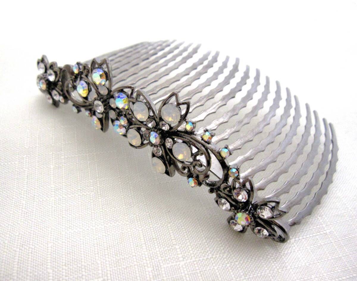 未使用 夜会巻きコーム ホワイト系 *ヘアアクセサリー*髪飾り*和装*女子会*スワロ*発表会*リトルムーン<240524-3>