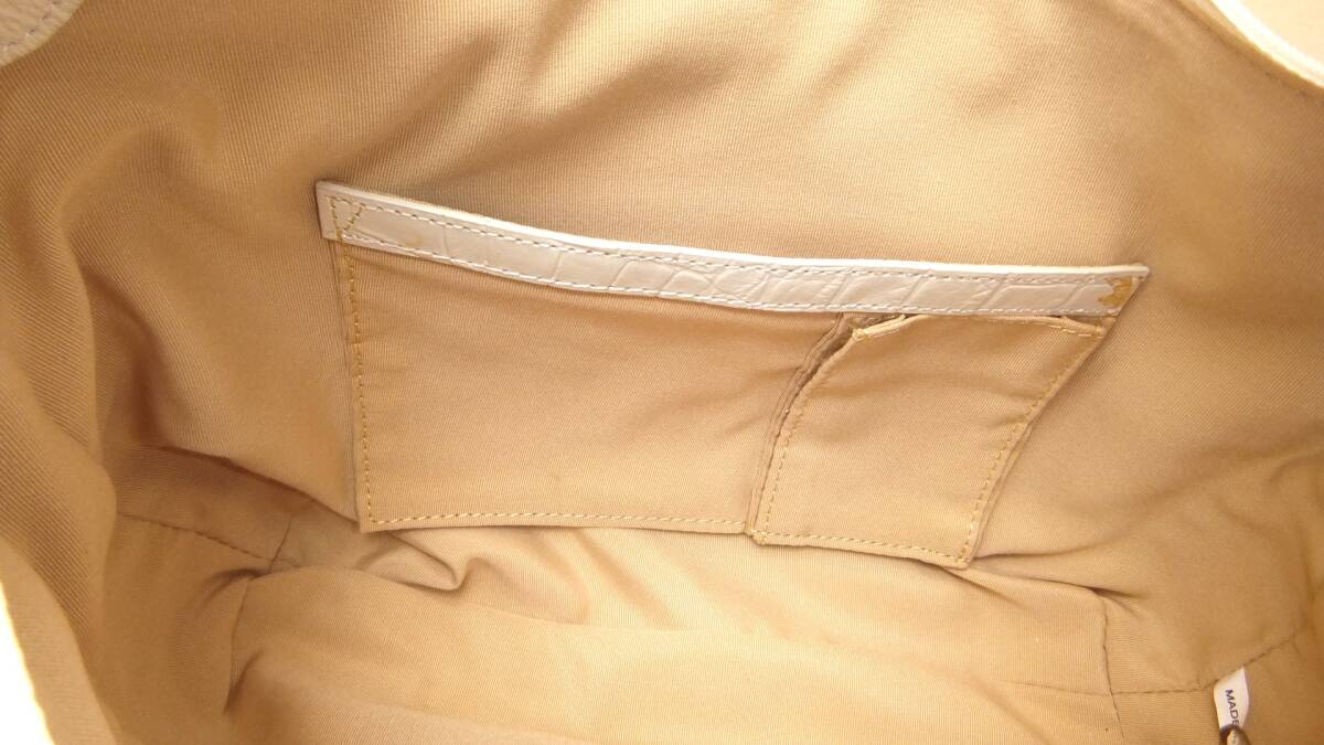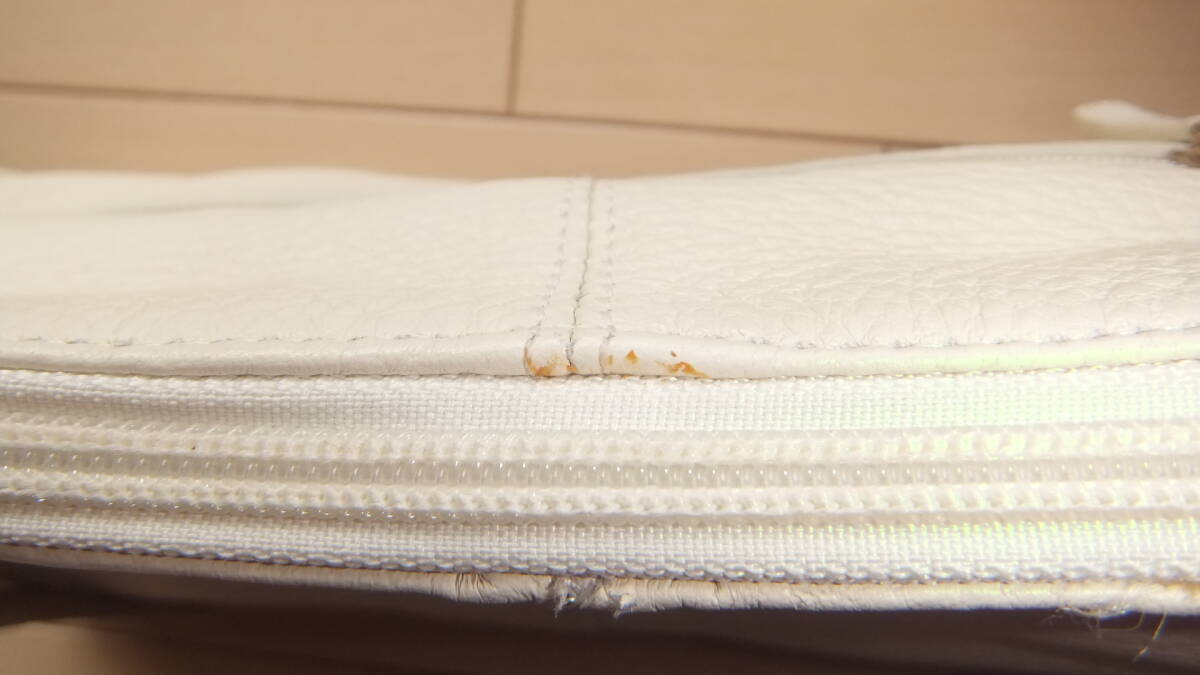 サイズ:約32×22cm、マチ約9㎝ 重さ:540g カラー:ホワイト 仕様:上部開閉はファスナー。 内側両サイドにポケットが2箇所(うち1つはファスナー付き)。 バッグ側面にもファスナーポケットがあります。 ★発送方法★(落札後にお選びいただきます) ・定形外¥920・ゆうパック(60サイズ) 喫煙者やペットはおりません。 商品画像と合わせてご確認いただき、中古の品であることをご理解の上、ノークレームノーリターンでお願いします。 |