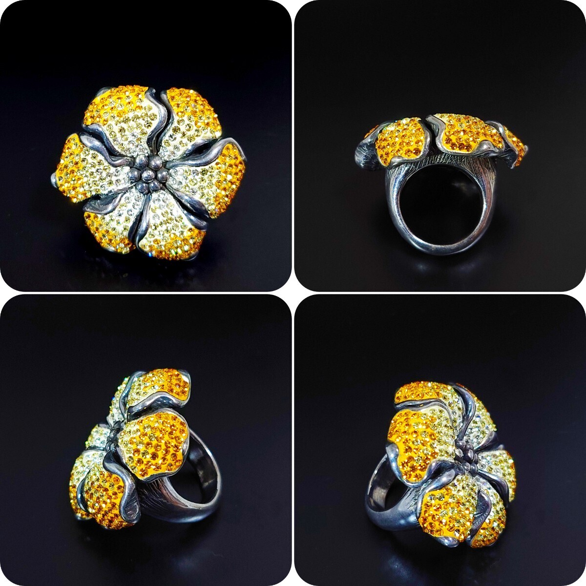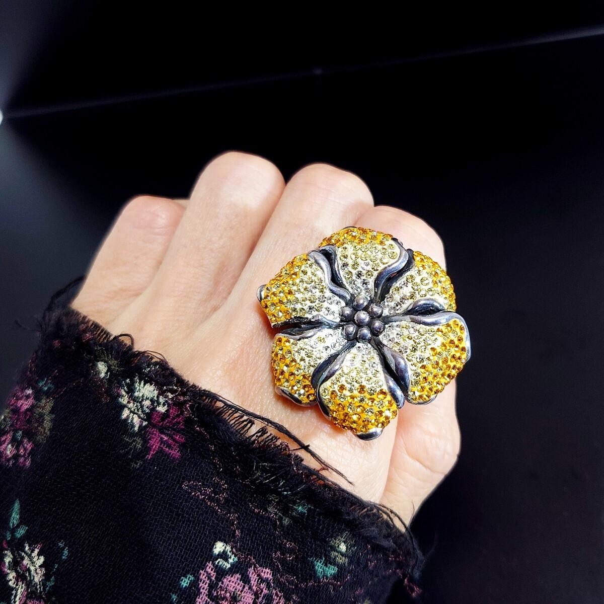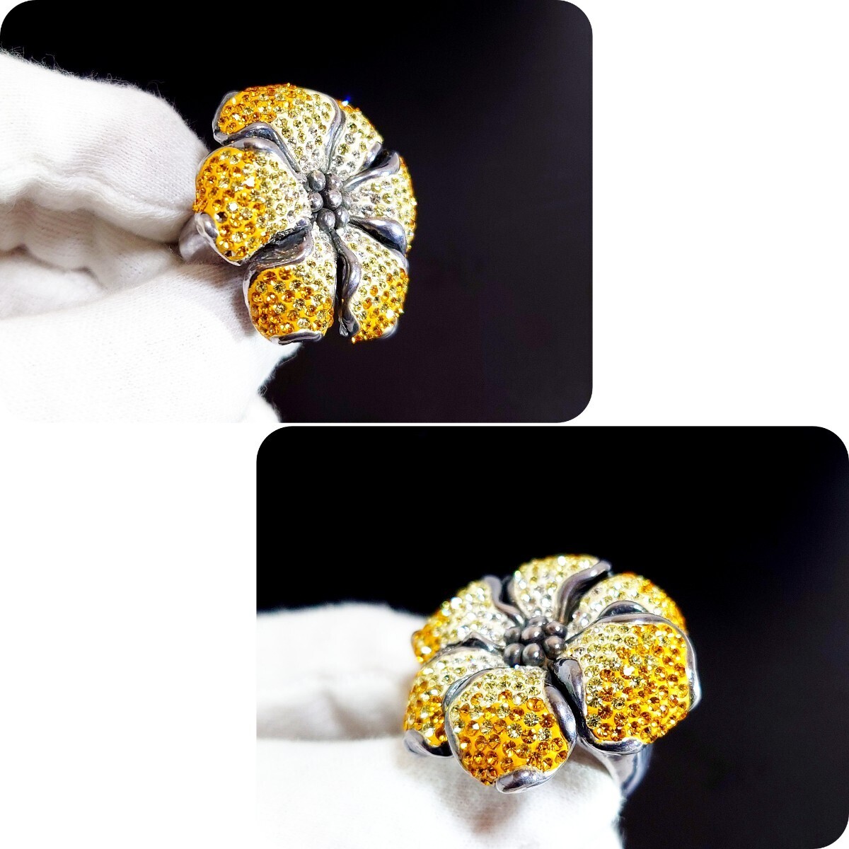 キラキラと輝くジルコニアとビックサイズのプルメリアはアンティークな雰囲気があり存在感抜群です♪