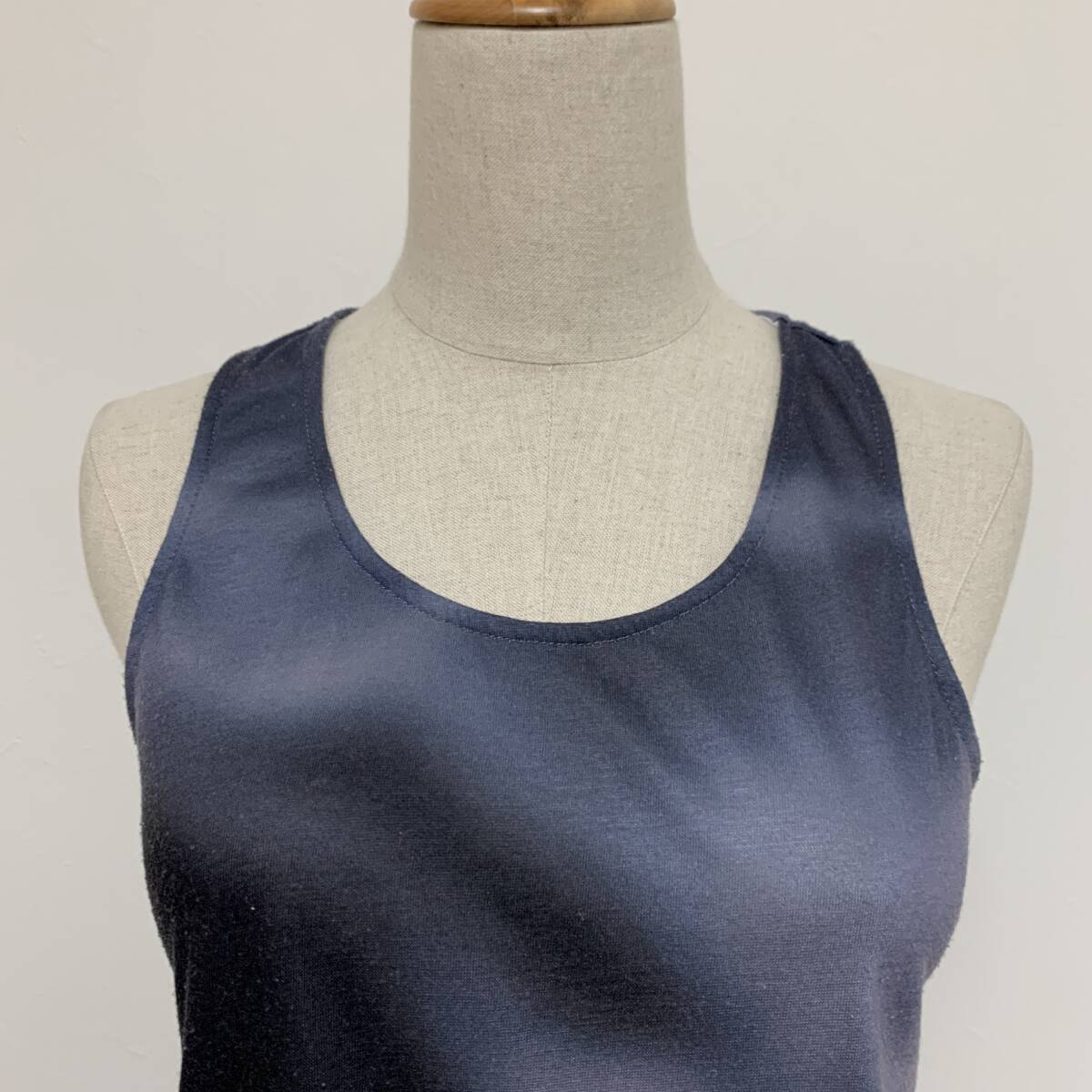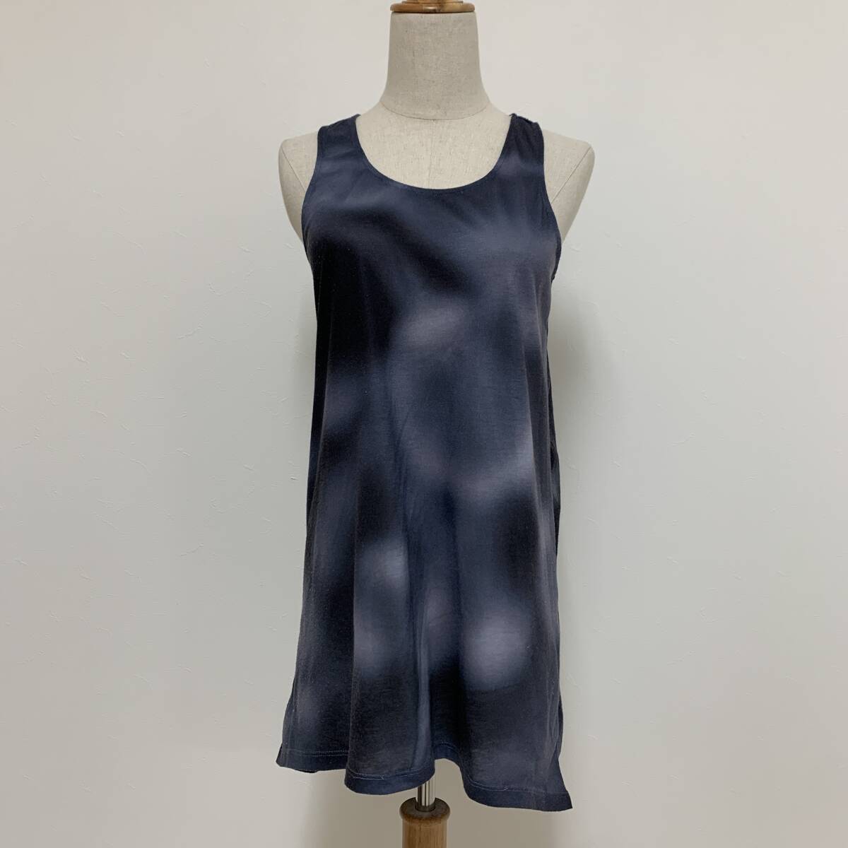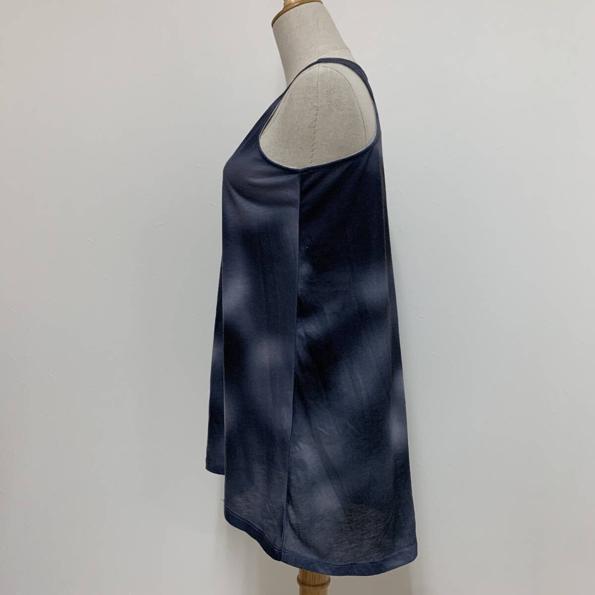 YH0357 レディース グラデーション タンクトップ 袖なし 薄手 ネイビー 紺 万能 カジュアルスタイル シンプル インナー ロング丈 USED 古着