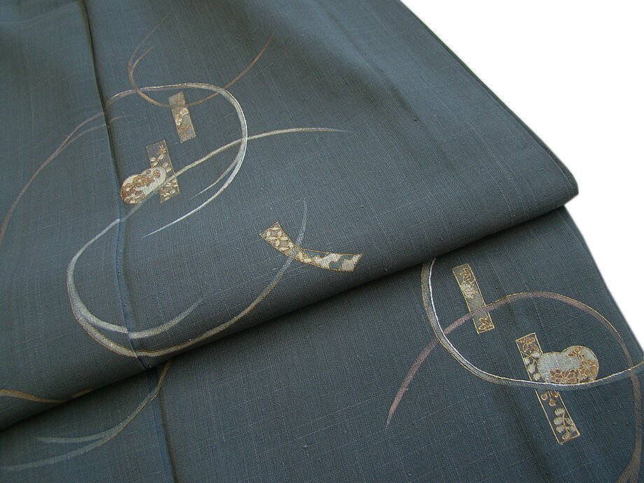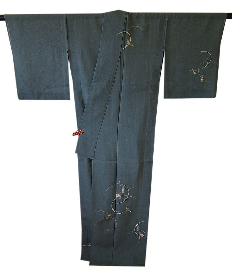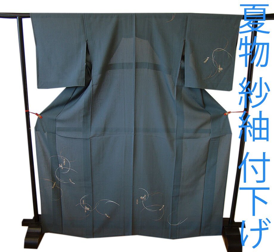 | 商品説明 | こちらのお品は夏物でございますので、7月~8月にお召頂ければと思います。 「紗」と言えば、絽と双璧を成す夏のお着物の生地で、 その最大の魅力は絶妙の透かし加減でございます。 清涼感溢れる地の風を通すしなやかさは、 夏に着物を着るという贅沢を快適に愉しませてくれる事でしょう。 着物には、大きく分けて「袷(あわせ)の着物」と「単衣(ひとえ)の着物」と「夏着物」があります。 反物(表地)を着物に仕立てるときに、裏地類をつけるものを袷の着物、 つけないものを単衣の着物と呼び、胴裏や八掛といった裏地がつかない一枚ものの着物です。 また裏地がないため、座る時などにヒップのラインが目立たないよう、 居敷当て(いしきあて)の生地をつけることもあります。 居敷当ては付いておりません。 大変にしなやかでさらりとした透け感が愉しく、独特のシャリ感に満ち溢れた 肌にべた付かない極上の風合いを纏う、「紗紬」の生地は、 渋いむしあお色地に短冊柄の染柄に金彩加工仕立て、 女性の美しい表情と凛とした麗しさを醸す洗練された印象を身に着ける逸品です。 |