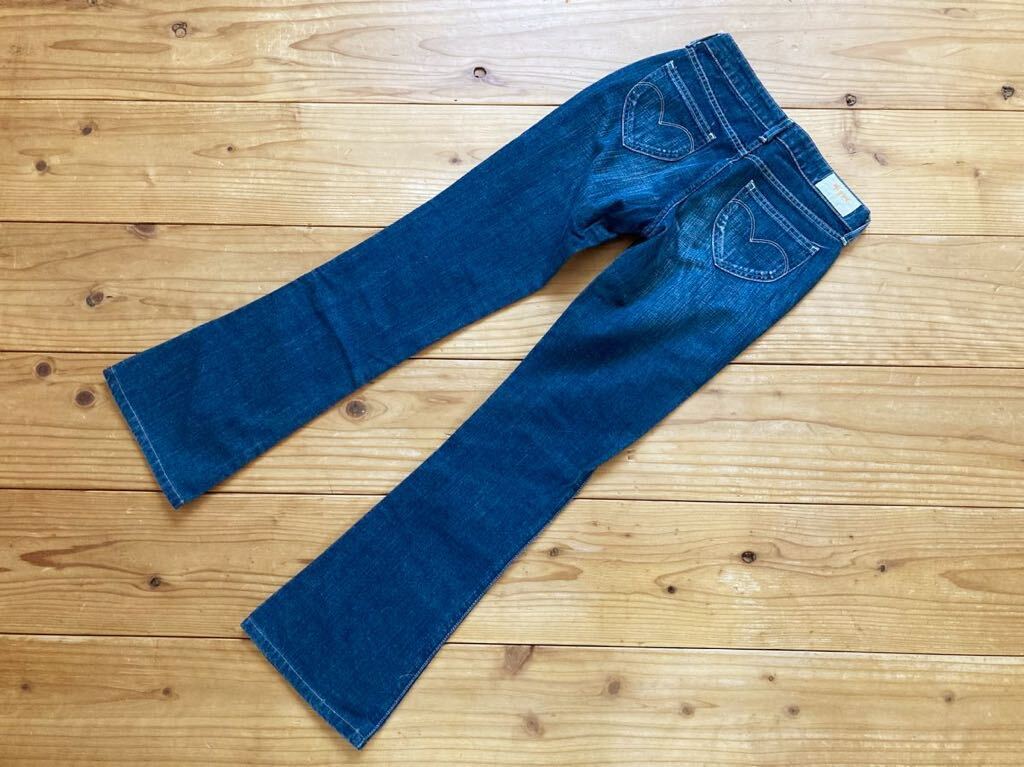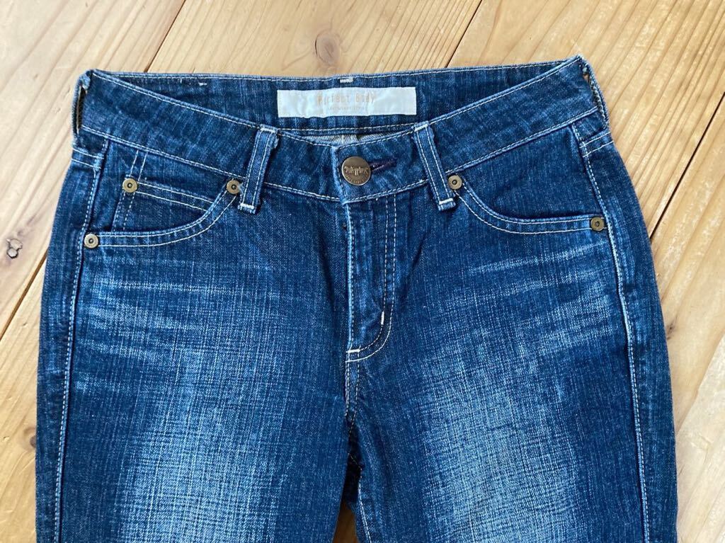※こちらレディース、27インチ(9号ボディウエストしまらなかったので、Sサイズ相当かと思います。下記実寸参照下さい)股下長めでシルエットのカッコイイデニムパンツです。