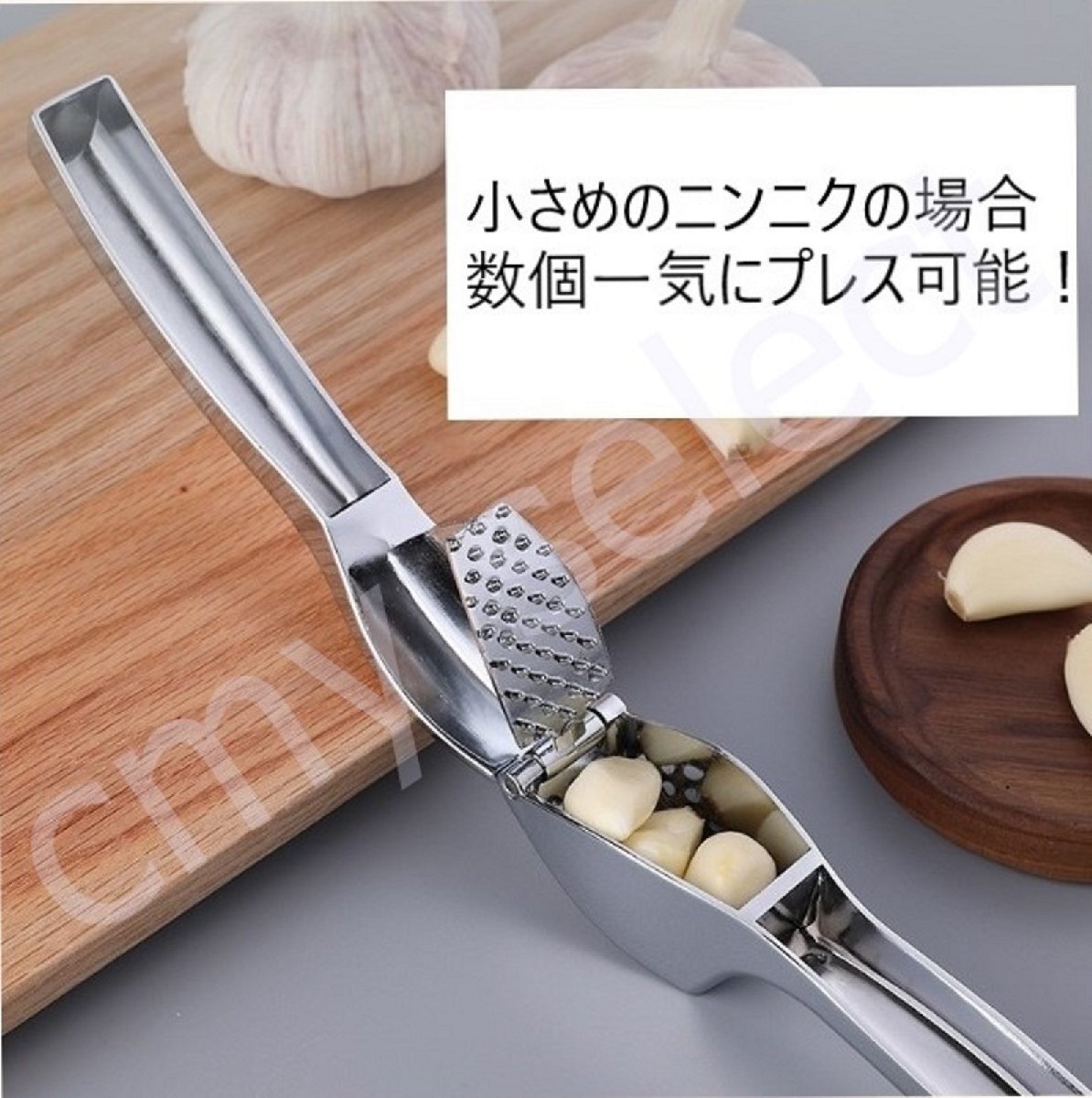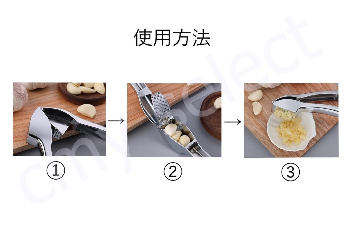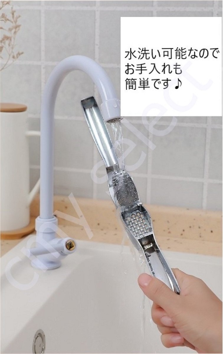 にんにくを潰すのに便利なキッチン用品です。小さめのニンニクの場合、数個まとめてプレスが可能です。【お手入れ方法】手洗いはもちろん、食洗機でも洗っていただけます。