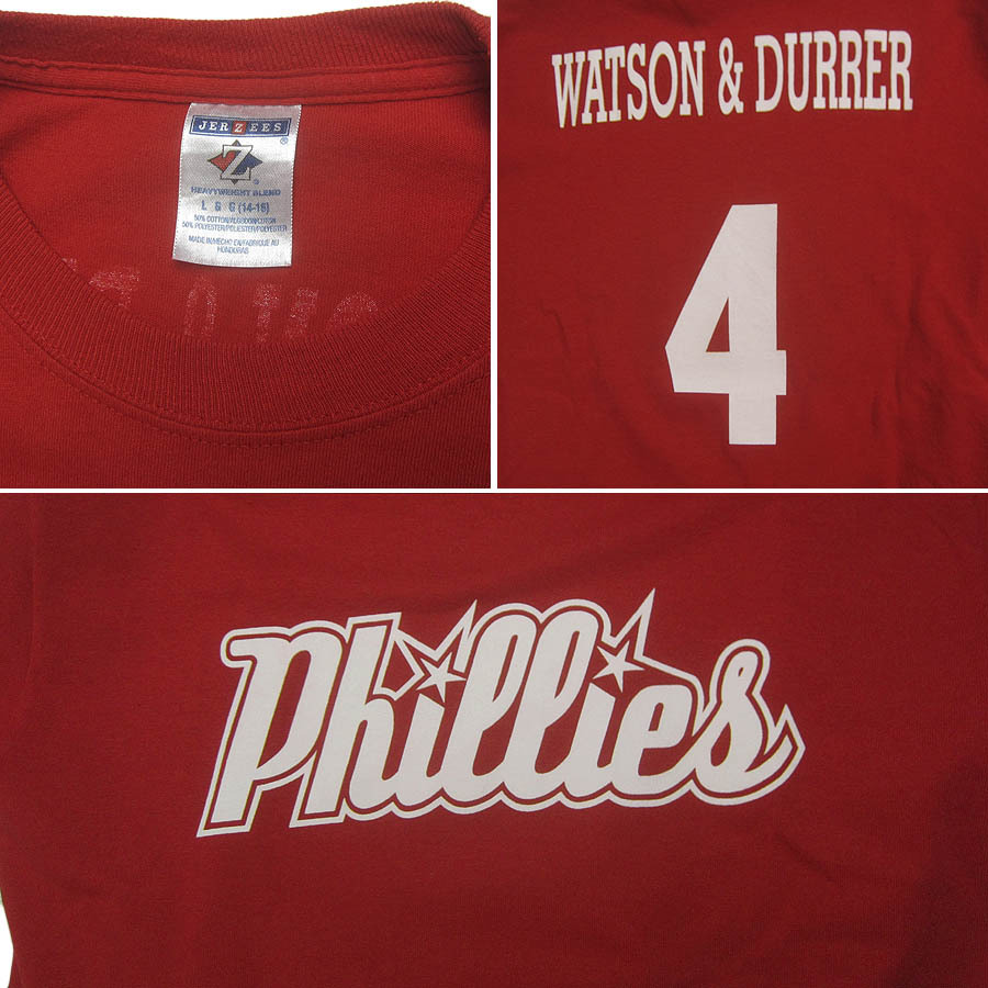 Phillies 背番号入り プリントTシャツ ティーシャツ JERZEES 赤色 ユースサイズ L アメリカ輸入古着 USED ユーズド tee tシャツ #n-94