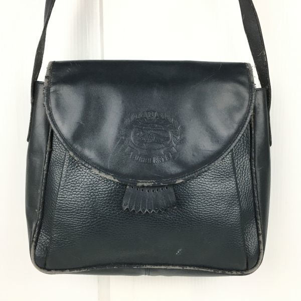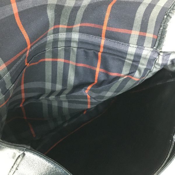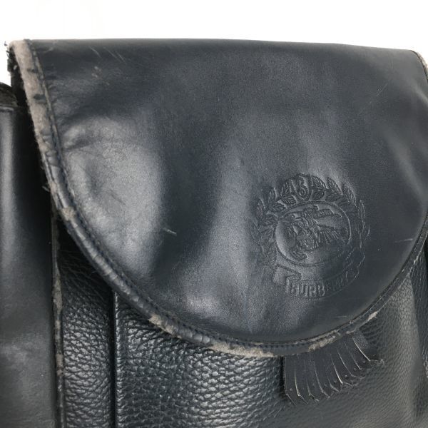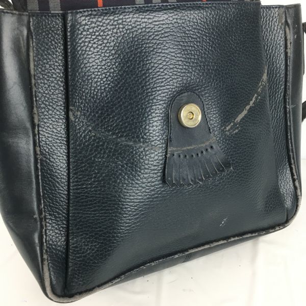 90sVintage★BURBERRYS/バーバリー★レザー ショルダーバッグ ダークネイビー/紺 内側チェック柄 訳特価 LEATHER BAG  管NO.XB5-74