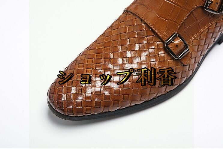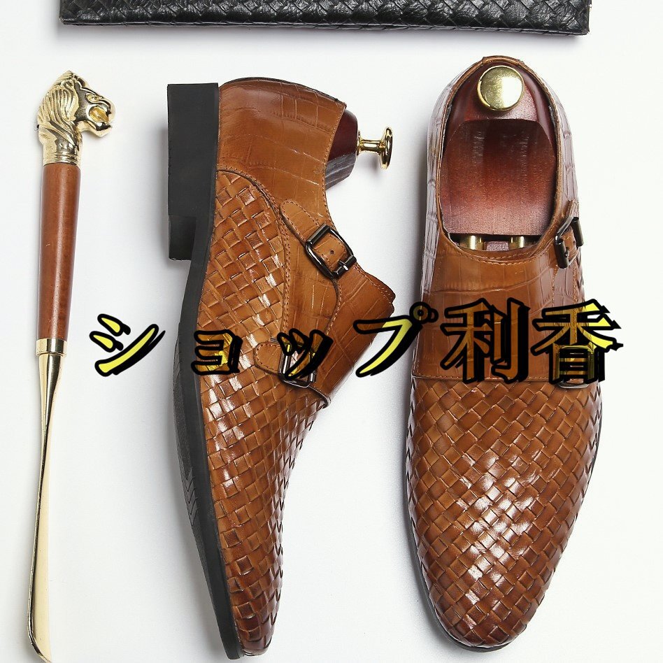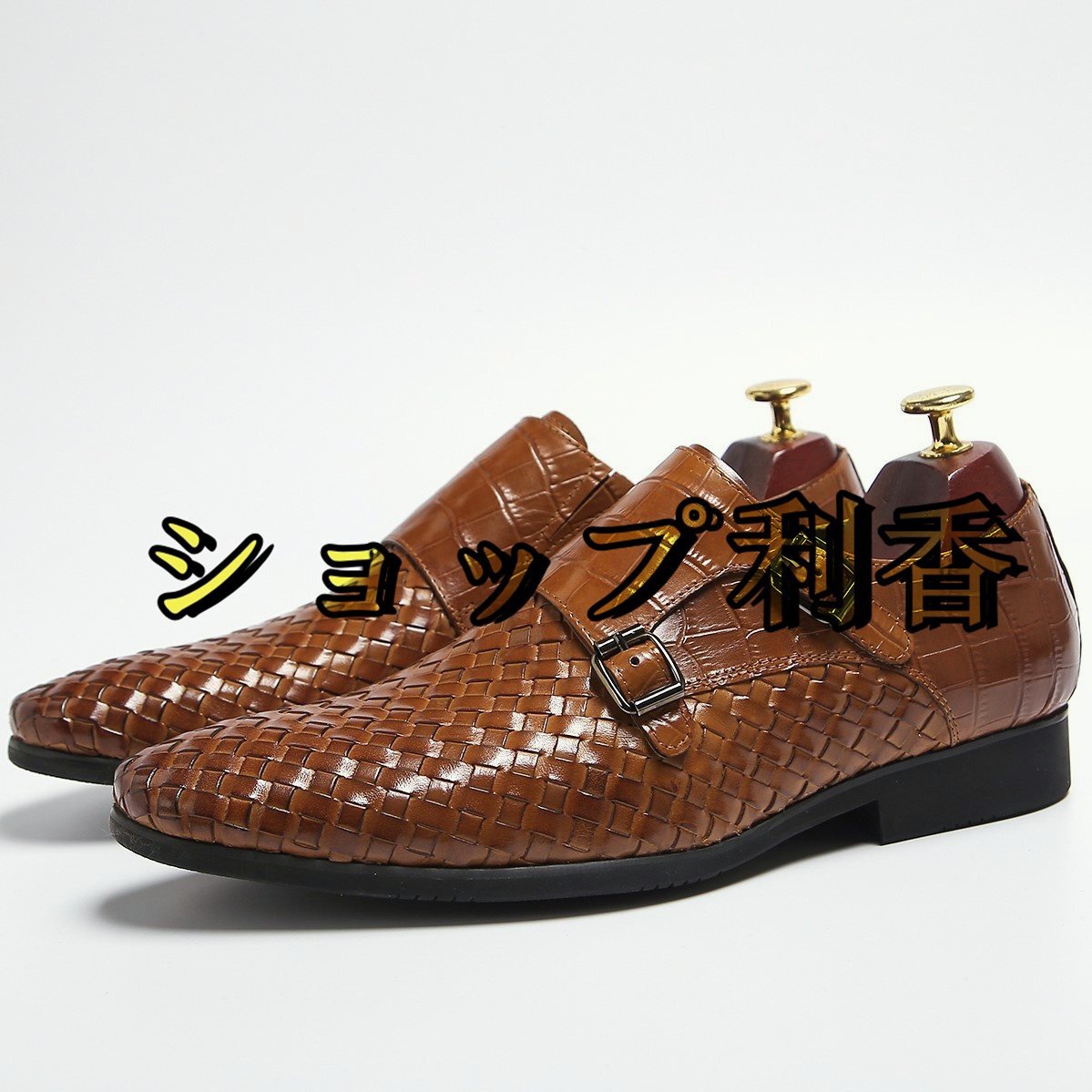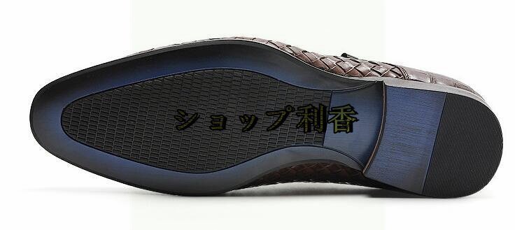 メンズシューズ 牛革 ビジネスシューズ 編み込み レザーシューズ 職人手作り紳士靴 ノースリップ 本革 トップレイヤー二色 ブラウン
