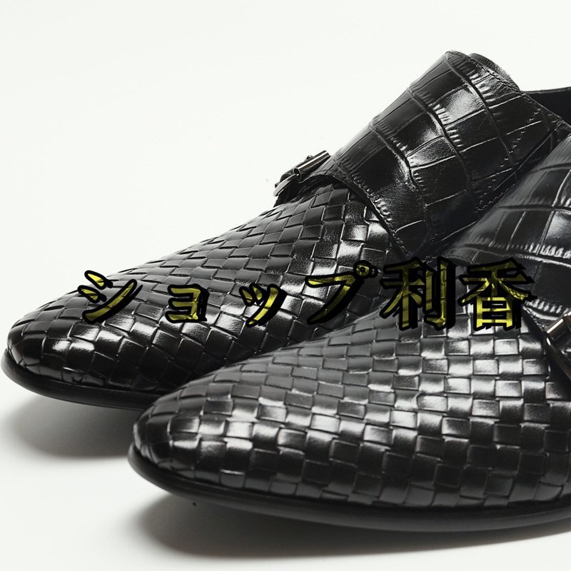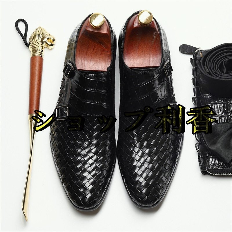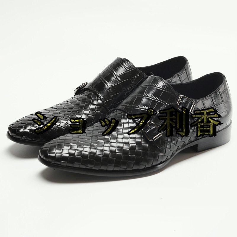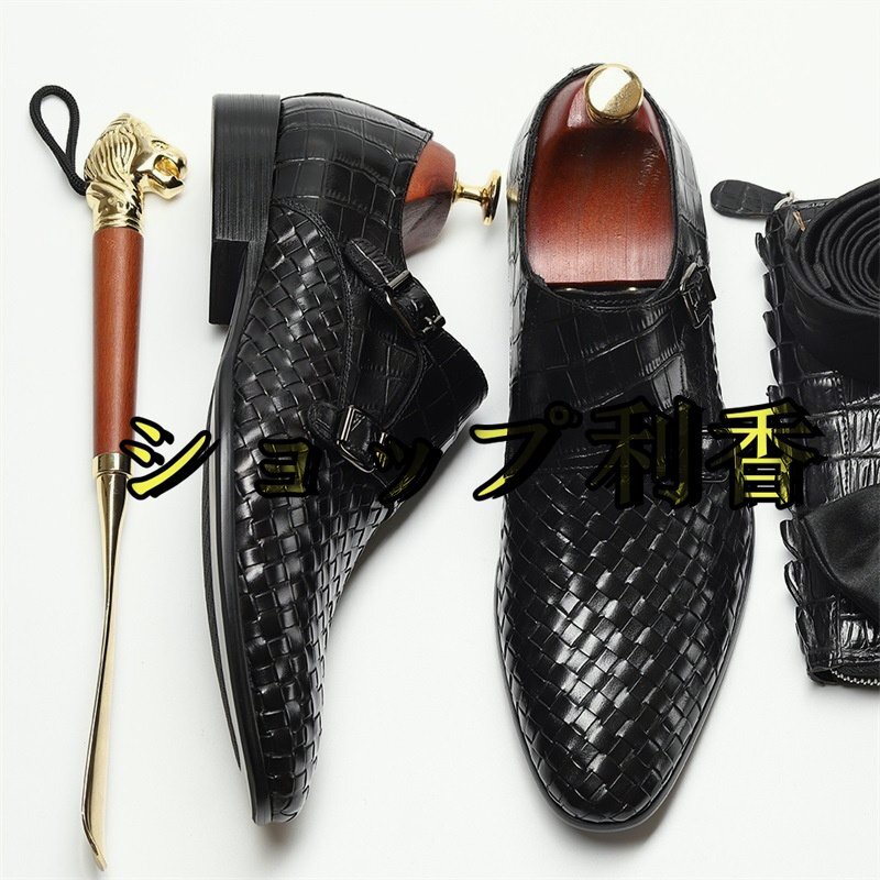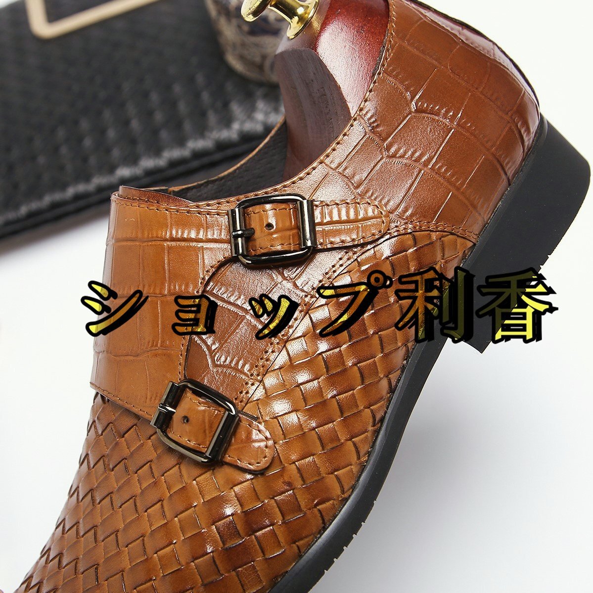 メンズシューズ 牛革 ビジネスシューズ 編み込み レザーシューズ 職人手作り紳士靴 ノースリップ 本革 トップレイヤー二色 ブラウン