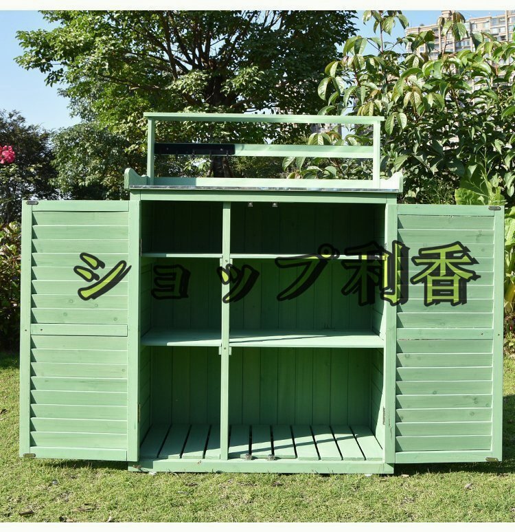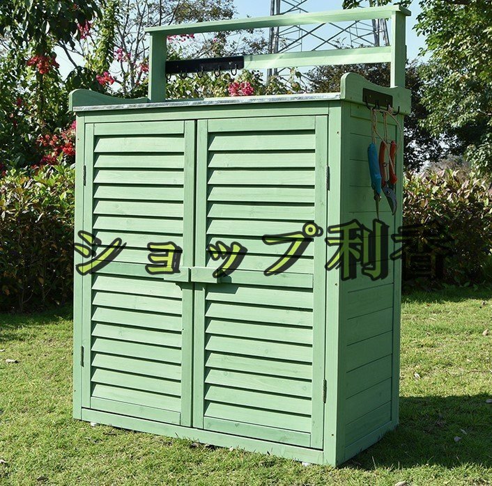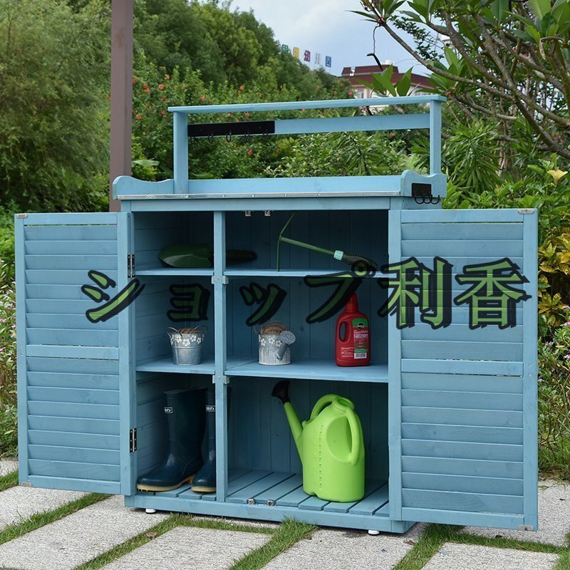 希少色★ 園芸用品 物入れ 天然木 木製/亜鉛メッキ素材 収納ボックス 収納庫 物置き 屋外収納 大型 倉庫 屋外 ガーデニング 収納棚 棚