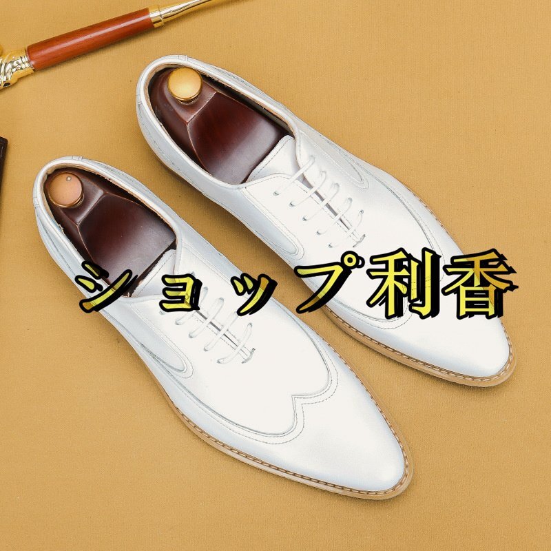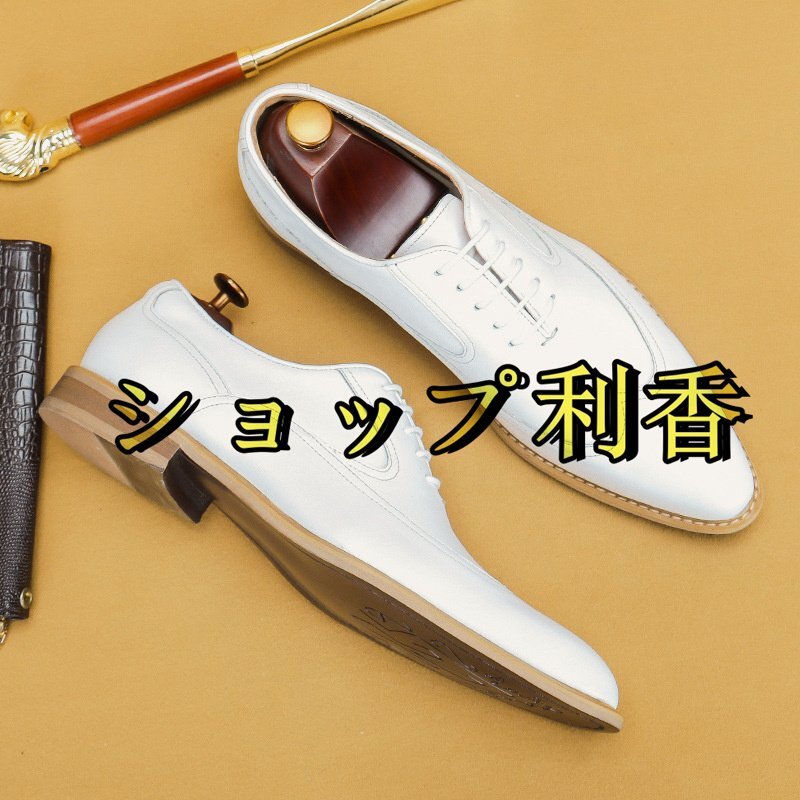 超美品 ビジネスシューズ 高級 レザーシューズ 新品 牛革 紳士靴 本革 皮靴 手塗仕上げ 結婚式 撮影 宴会 ホワイトシューズ 24cm~28cm