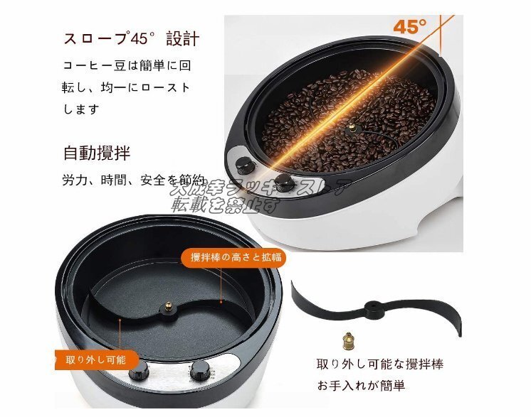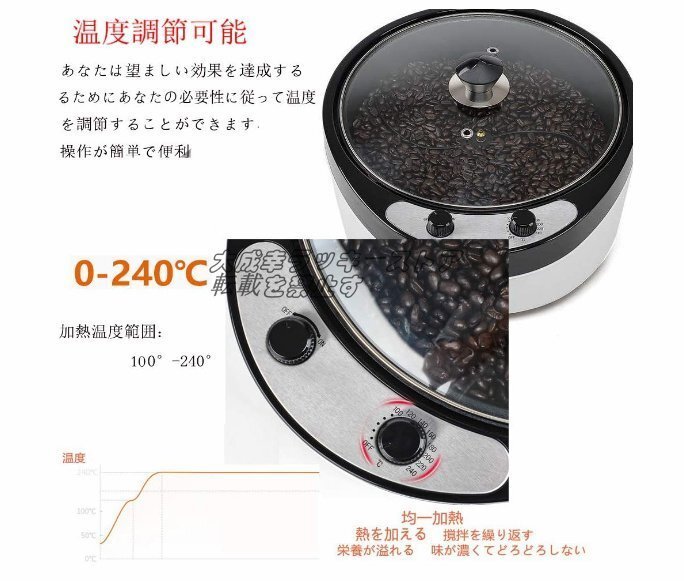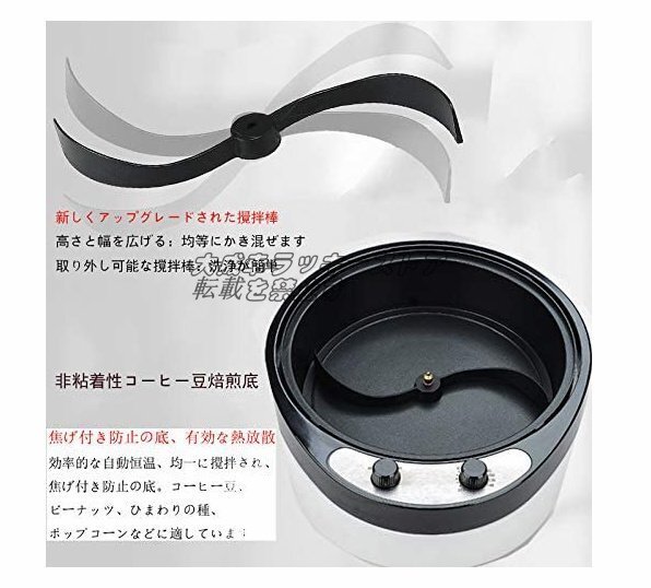 焙煎機 コーヒーロースター 電動 珈琲焙煎機 自動攪拌 ホームロースター ポップコーン 豆/ひまわりの種/珈琲/コーヒー生豆 焙煎器 家庭用