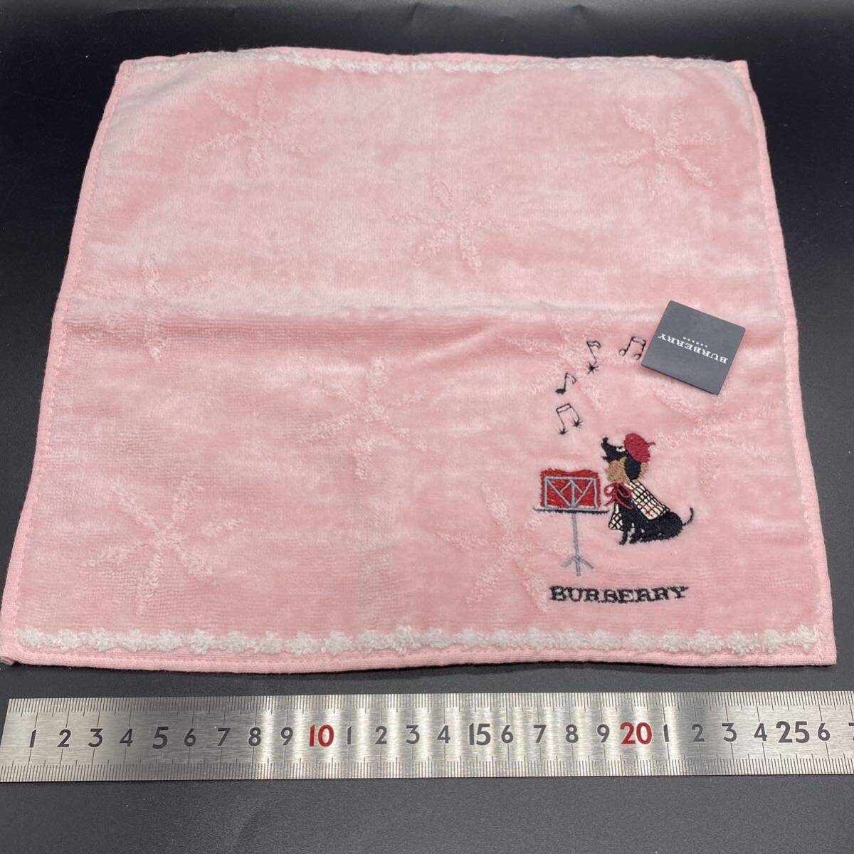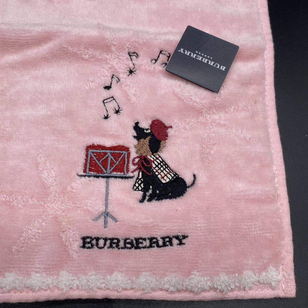 BURBERRY バーバリー タオルハンカチ ピンク ダックスフント 音楽 楽譜 刺繍 no.37