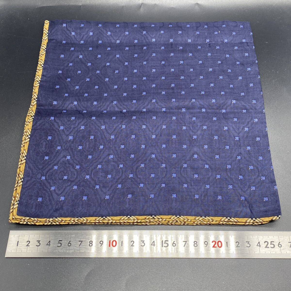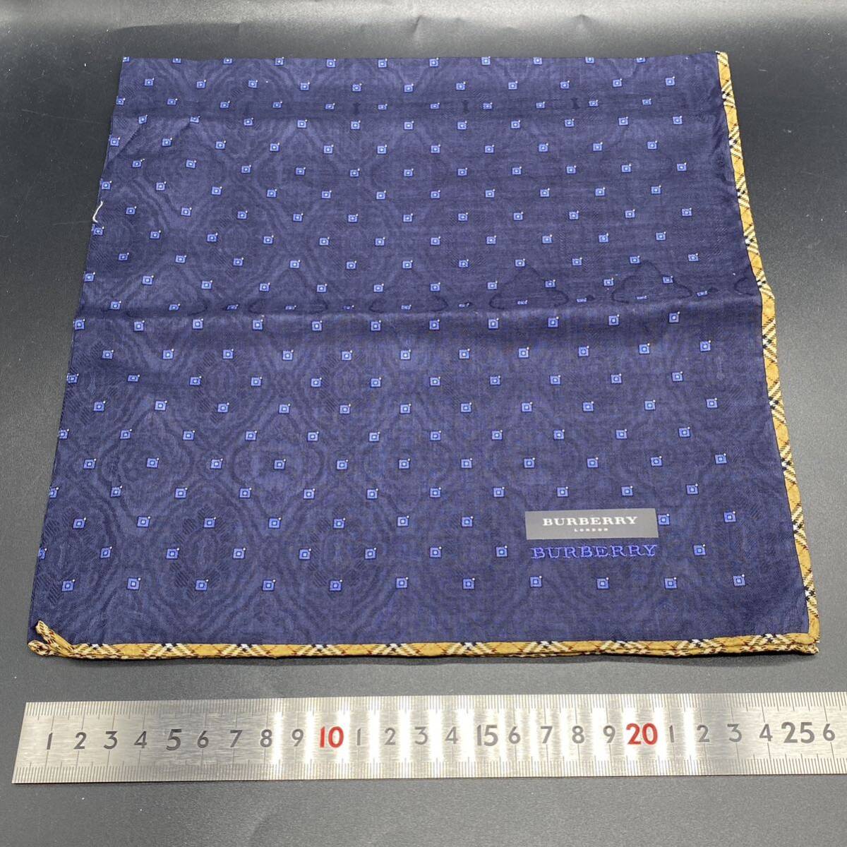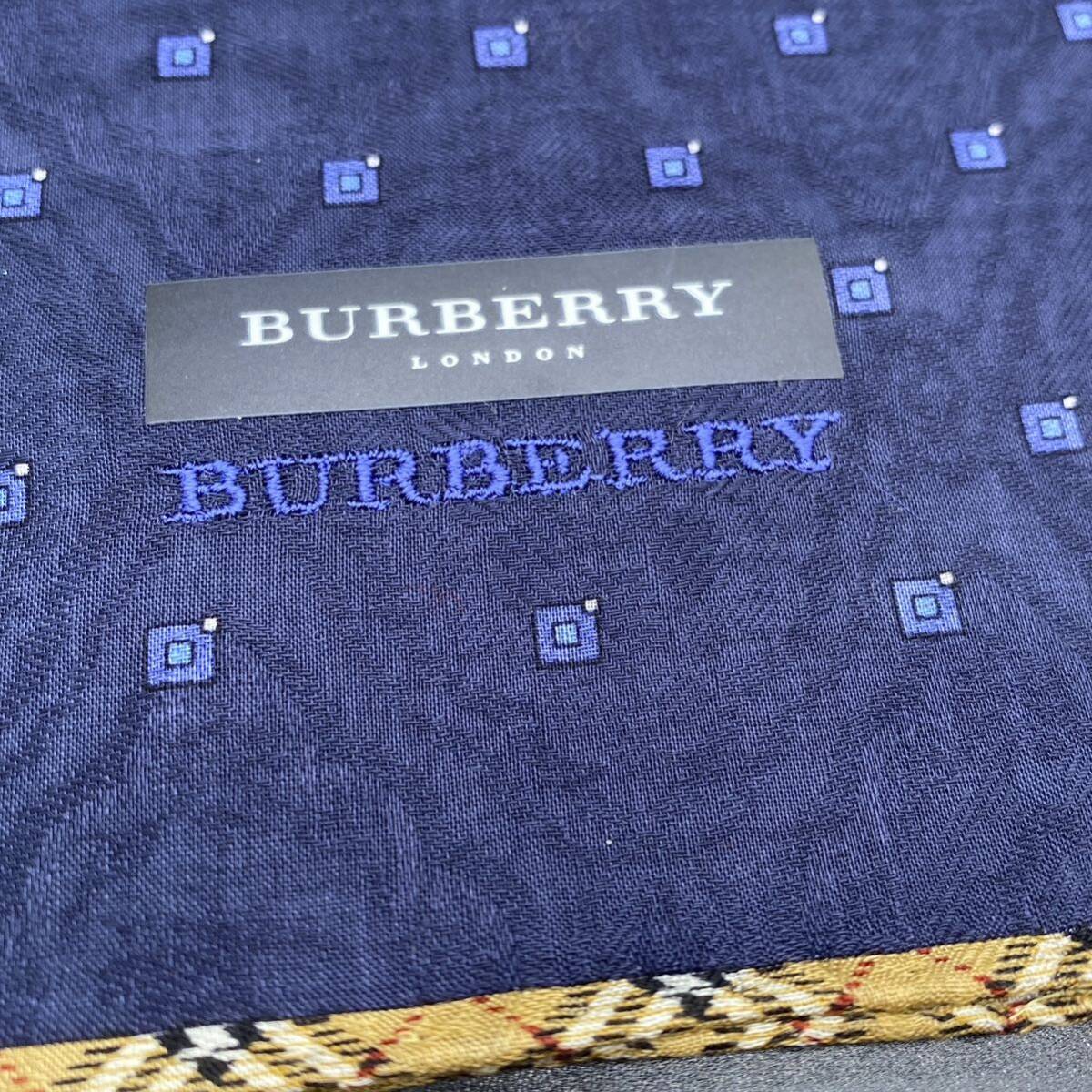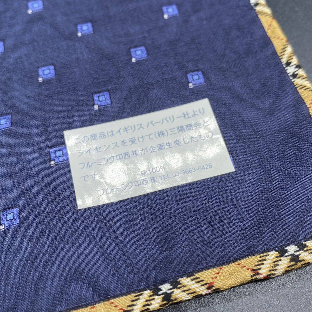 BURBERRY バーバリー ハンカチ ネイビー スクエア ふちチェック ロゴ刺 no.37
