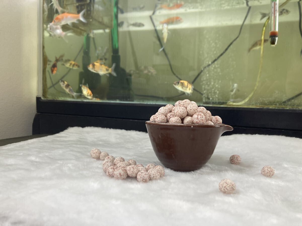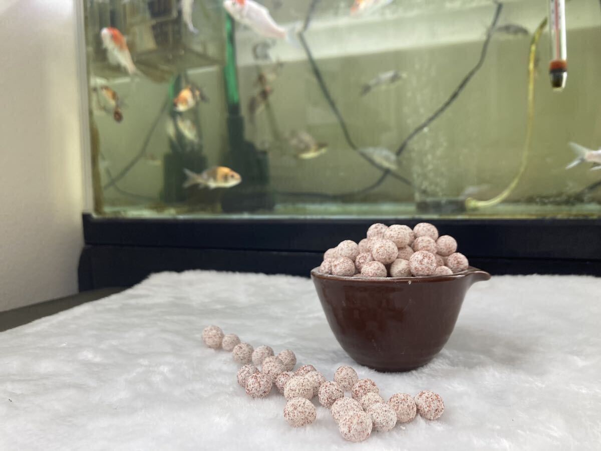 こちら麦飯石入り高品質ろ材です。10mmの球状です。