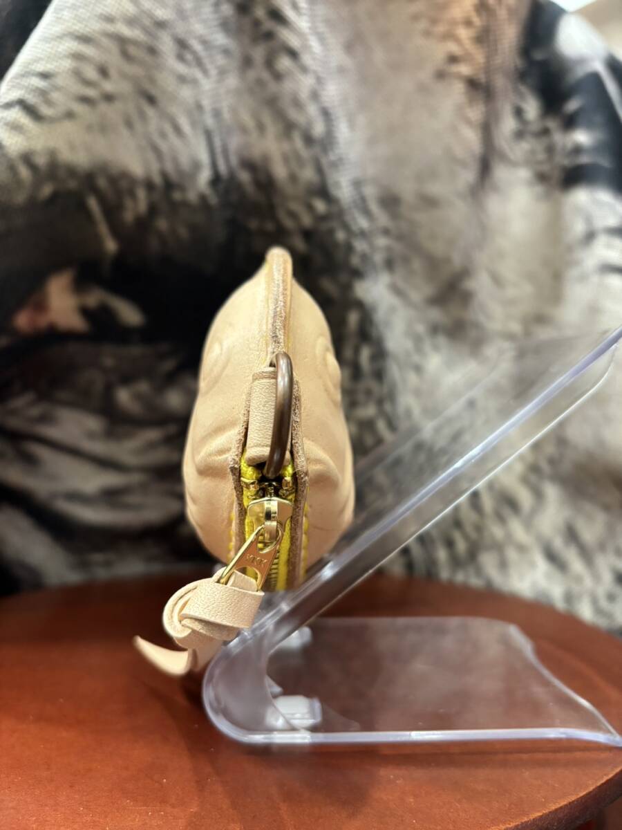 レザーたい焼きポーチ 2way きいろ色 財布 小銭入れ 小物入れ ヌメ革 カラー15色以上あり 推しカラー