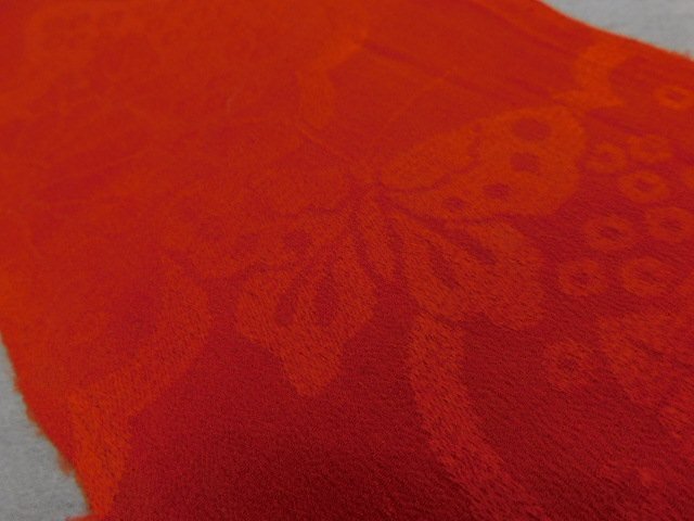 〔楽布〕P28738 紋縮緬 赤無地 ハギレ 半巾 42cm×17cm 古布古裂 大正ロマン k