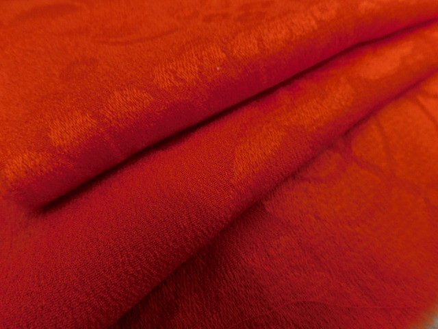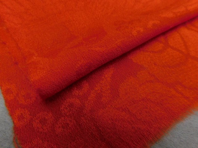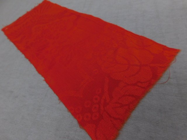★品名★    紋縮緬 赤無地 ハギレ 半巾 42cm×17cm 古布古裂