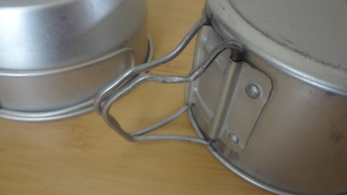 自宅保管品 アルミ製 2個セット 持ち手変形あり 汚れ傷スレ等有 汚れ有サイズ約12.5×6.5センチ 汚れなしサイズ約13×6センチ メーカー別々の為 重なりません