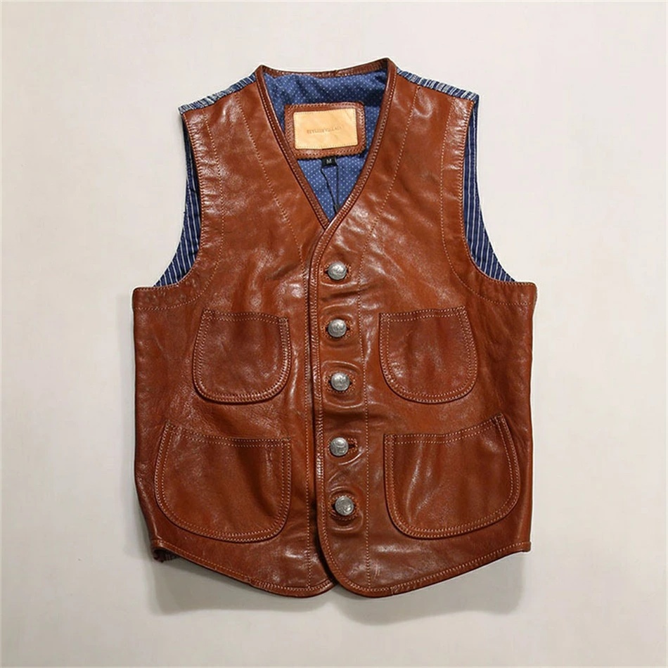 ★新品★メンズ LWMZ32-XLサイズ ブラウン 羊革レザーベスト バイクベスト パンク風 カジュアル ライダースベスト バイクウェア 本革