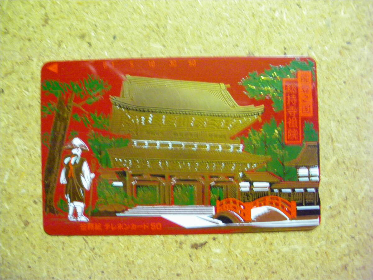 makino・蒔絵 能登之国 総持寺 赤色 1つ切り込み 50度数 未使用 テレカ