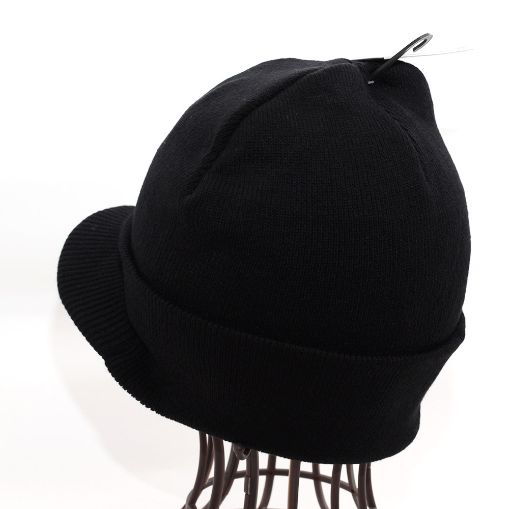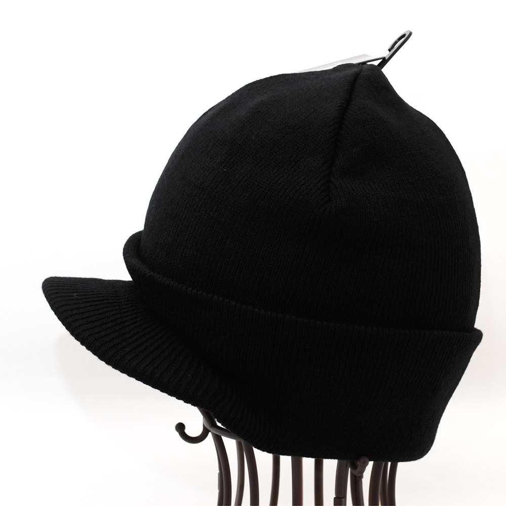 ツバがついたリブニットキャップ。