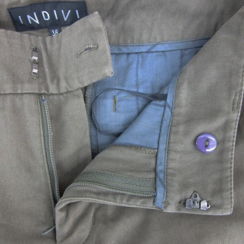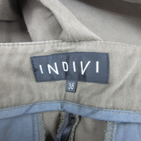 インディヴィ INDIVI テーパードパンツ 七分丈 ロールアップ 38 カーキ /YM12 ■MO レディース