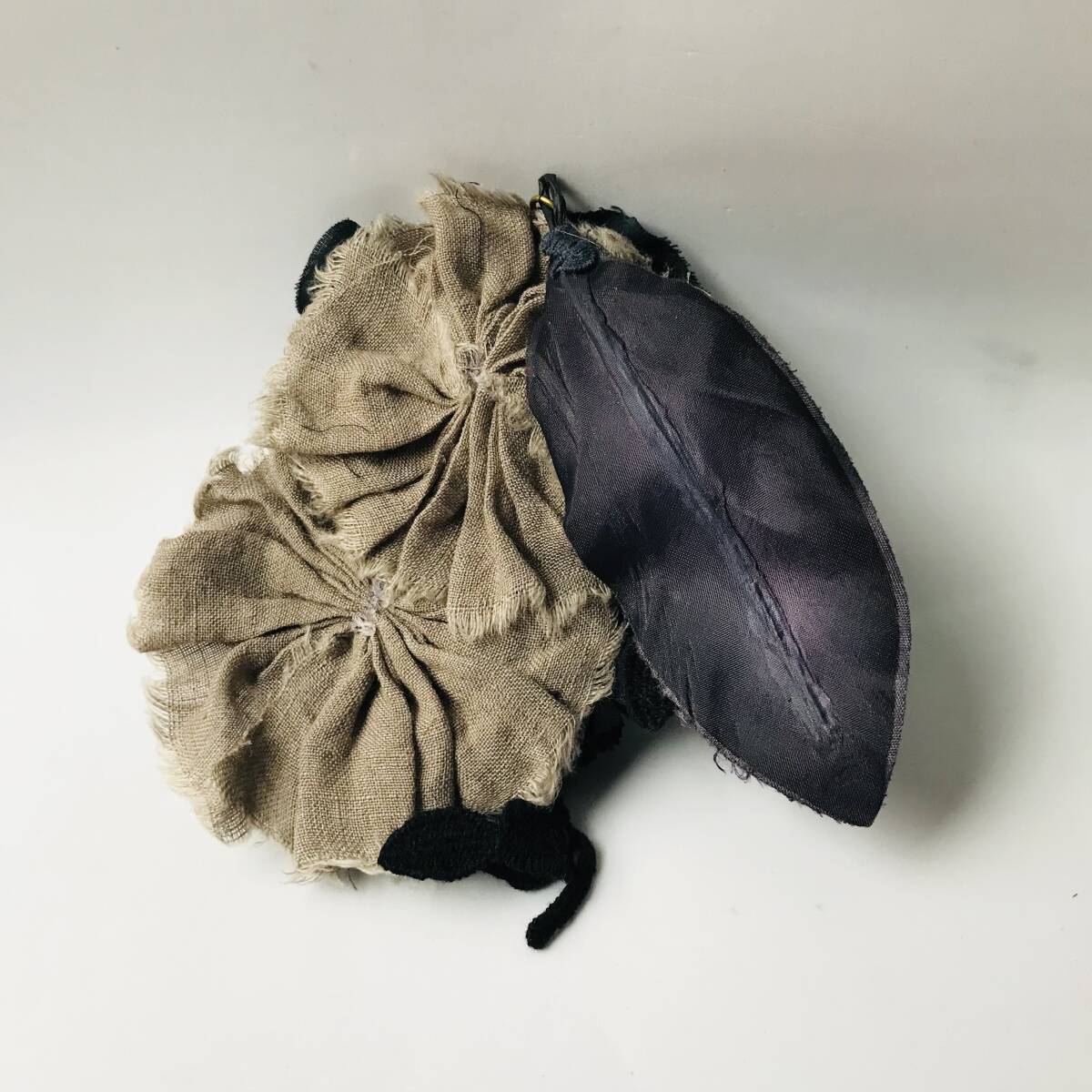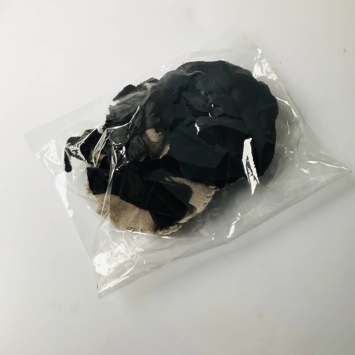 エムスールでは珍しいブラックベースで、大人の女性でも抵抗なく使えるデザインだと思います。保管中頂いた袋に入れたままでした。袋を開けると独特の匂いがします。使っていくうちに気にならなくなるとは思います。繊細なお素材なので、未使用ですが、未使用に近いとさせて頂いております。
